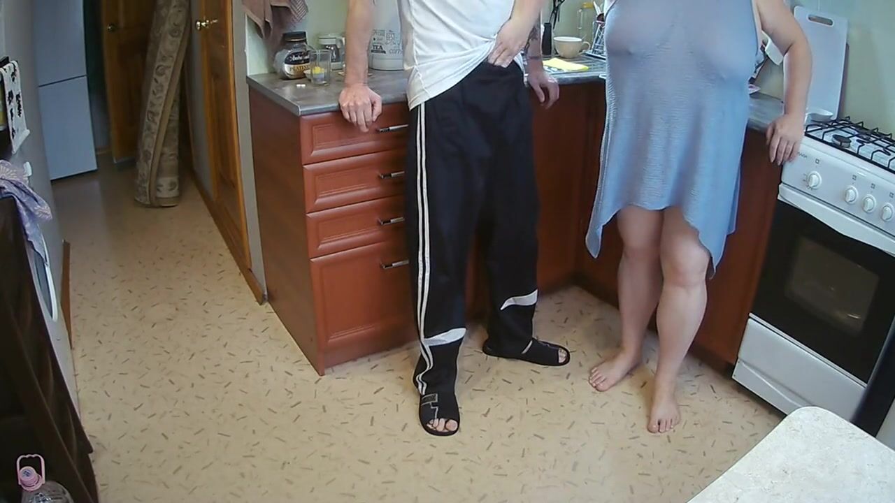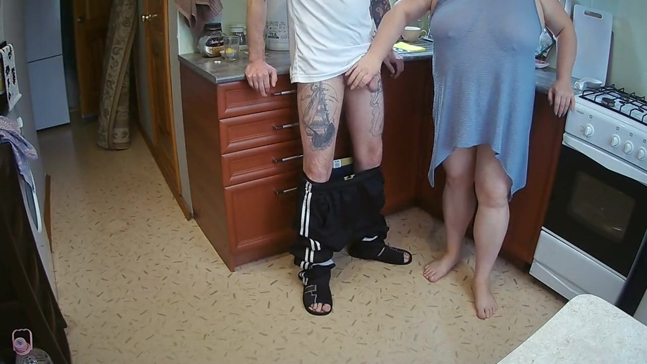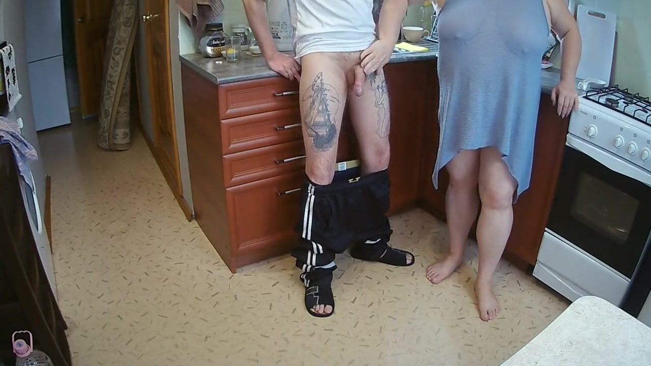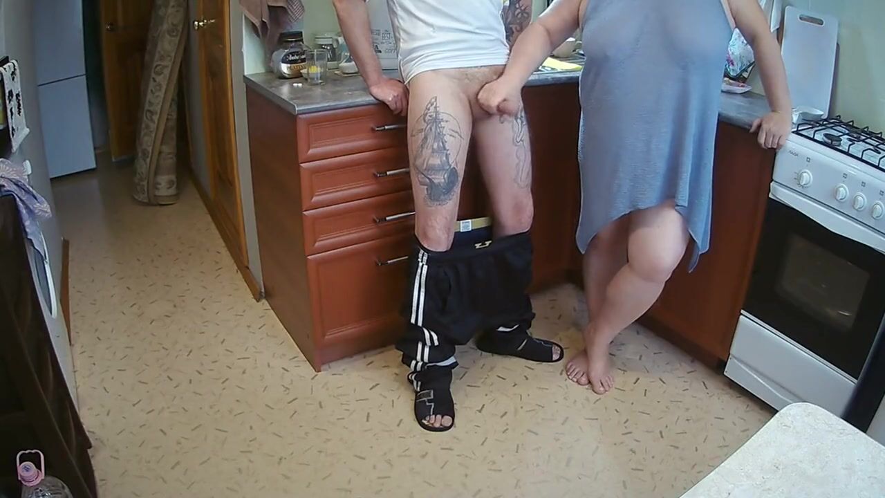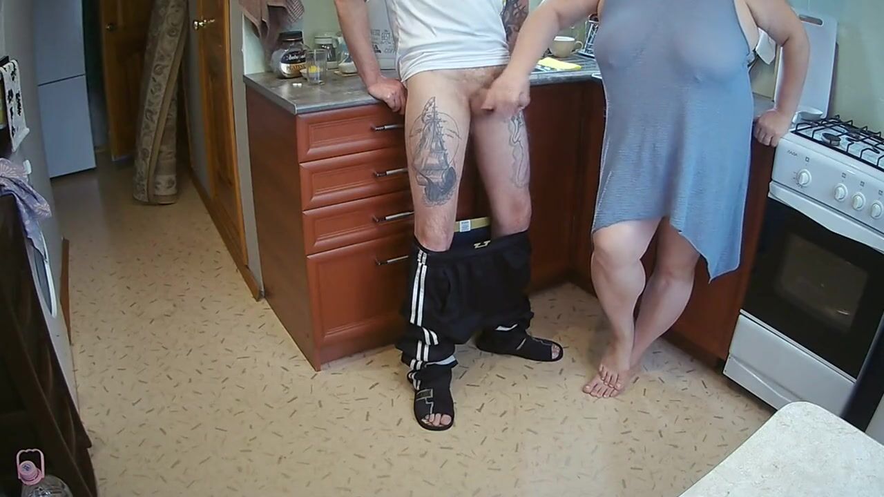 manual stimulation of my penis before cumshot in the morning in the kitchen