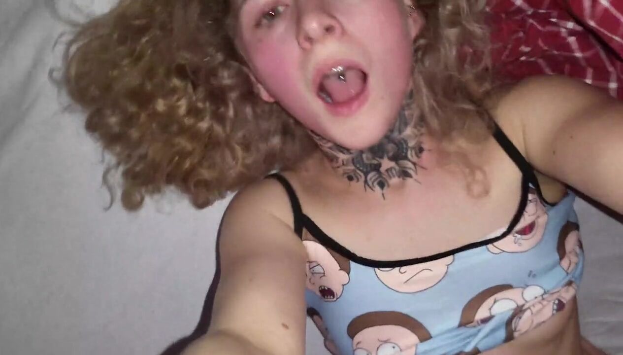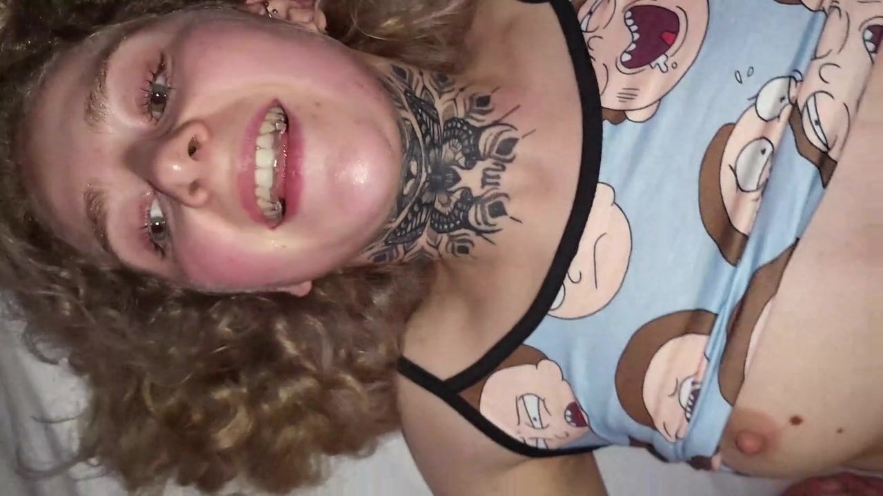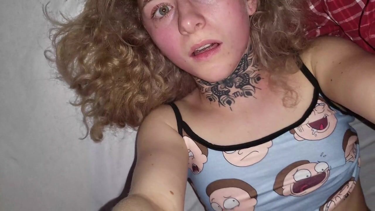Schoolgirl tranny fucks classmate with tattooed dick! ANAL gapes, Cum covered ass