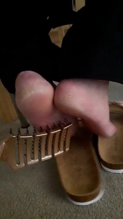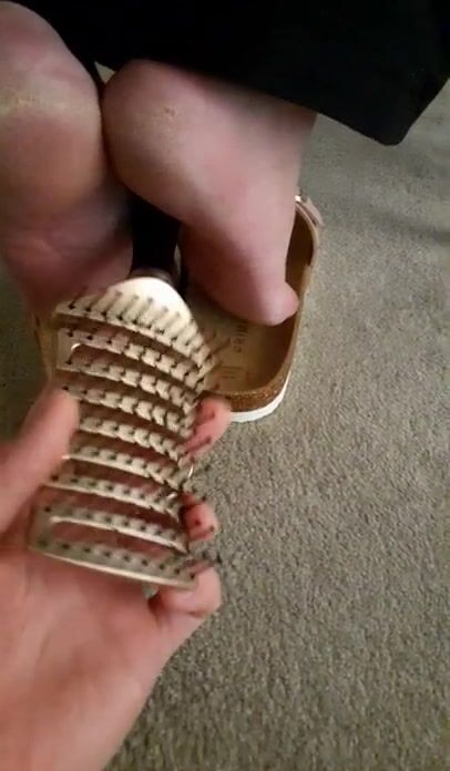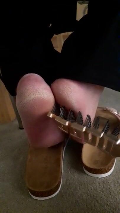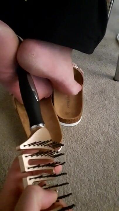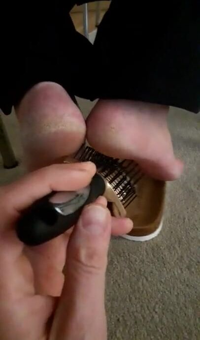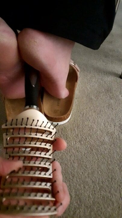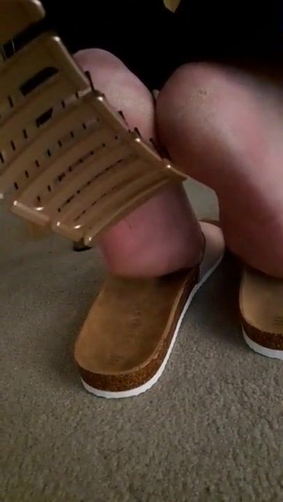 Mature feet tickle under chair 2