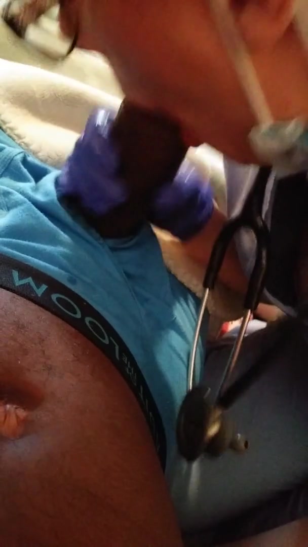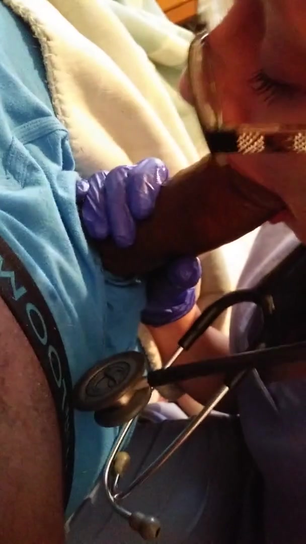Mature Horny Nurse with Latex Gloves gives Blow Job to Patient no COVID-19