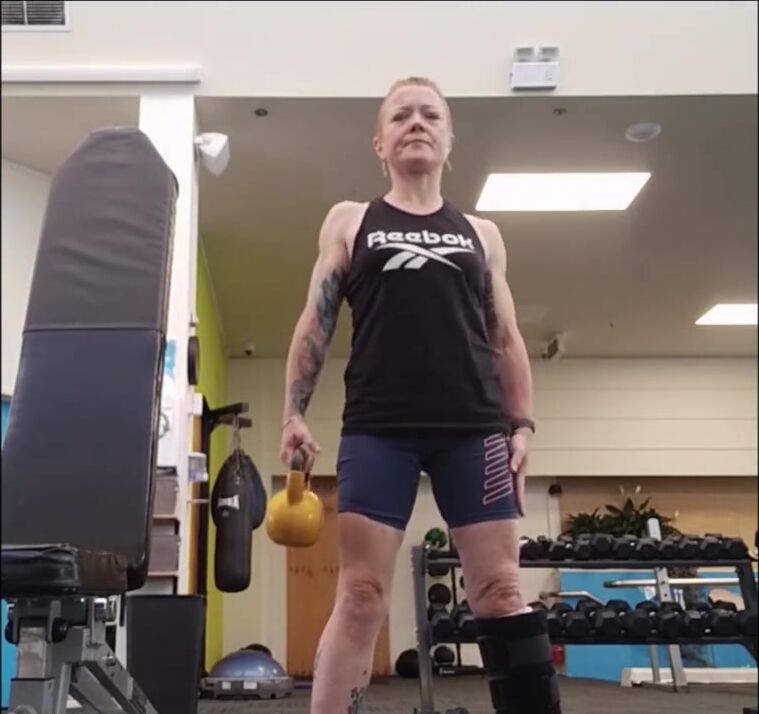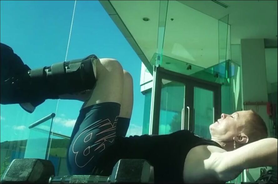 Mature red head shows off her muscles