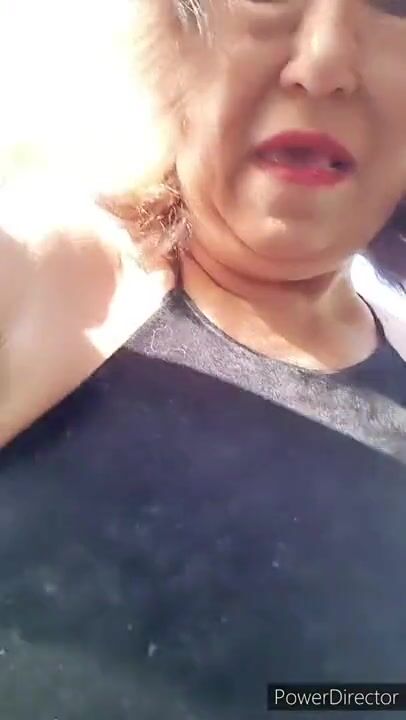 Mature woman not wearing panties pissing in parking lot