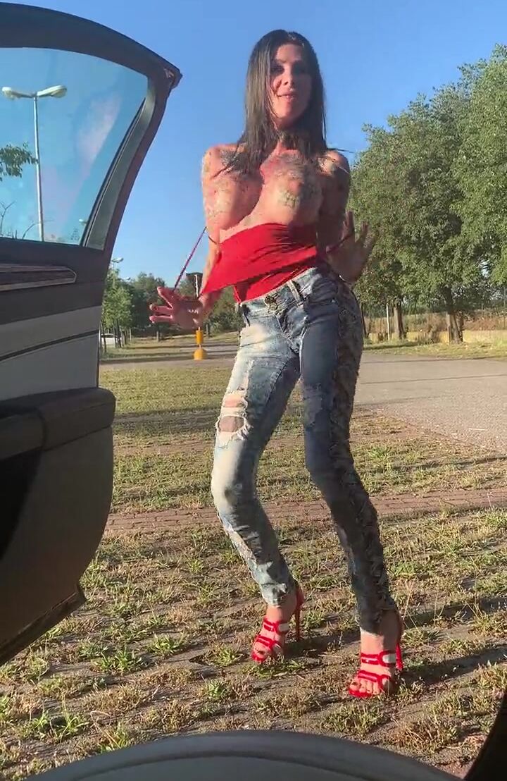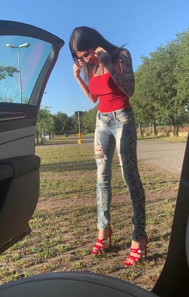 Megan Dancing naked and flashed outside the car in car Cinema car parking