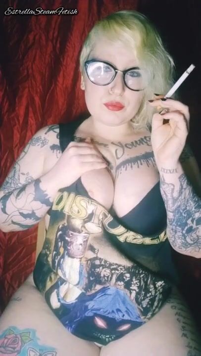 Metal girl smokes a cigar