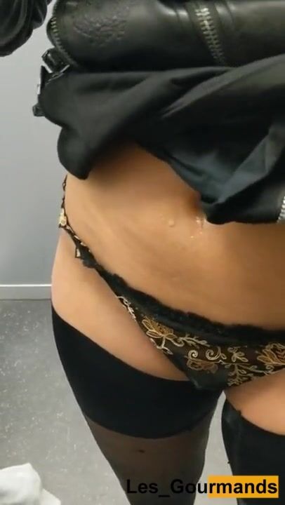 MILF empties a cock in her thong in an elevator
