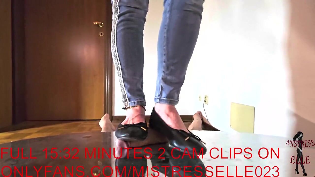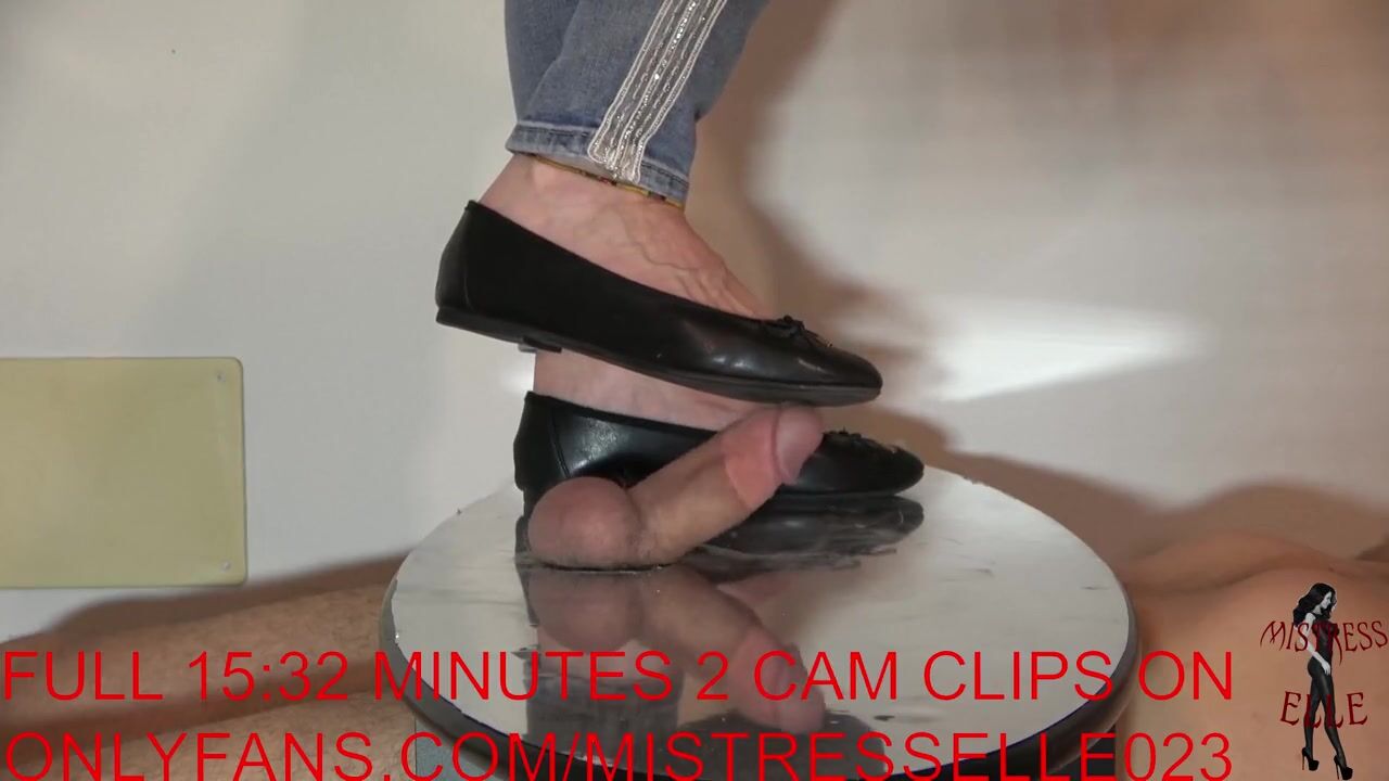 Mistress Elle with her flat shoes humiliates her slave's cock