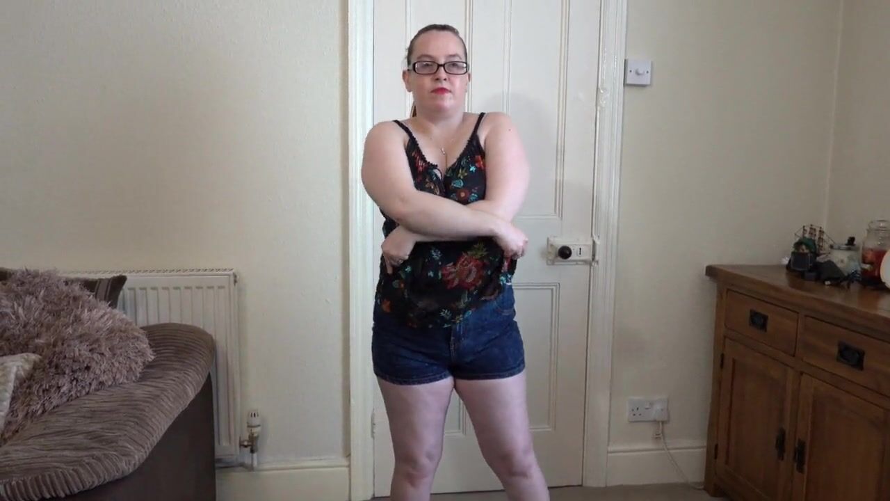 Spill out natural boobs from short student uniform top, wedgie thong leotard, hair...