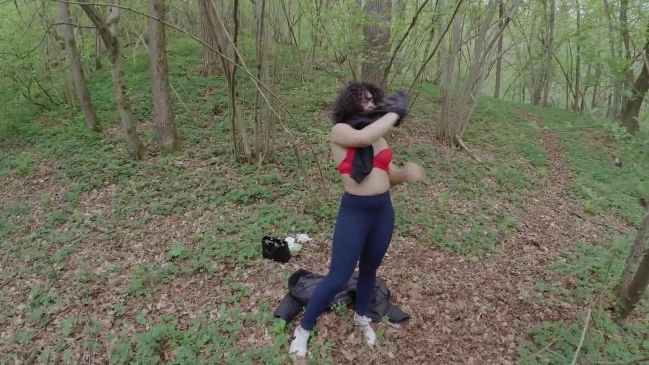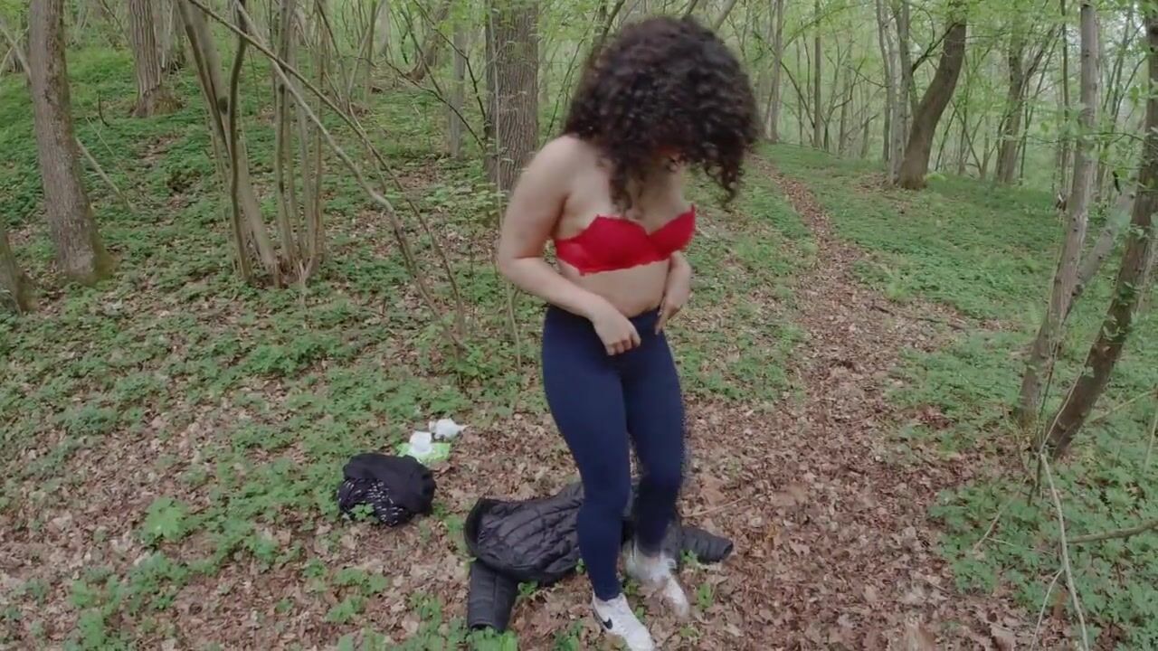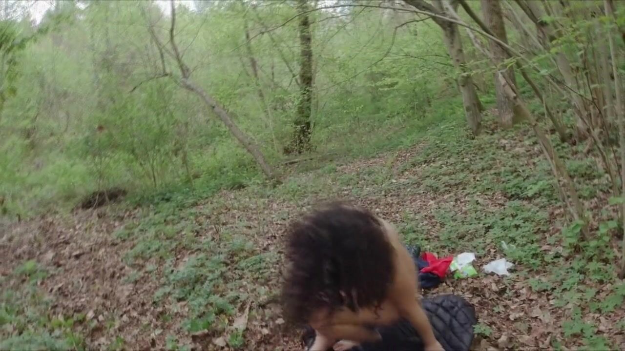 mulatto girl strips completely in the woods, then masturbates and squirts - amateur