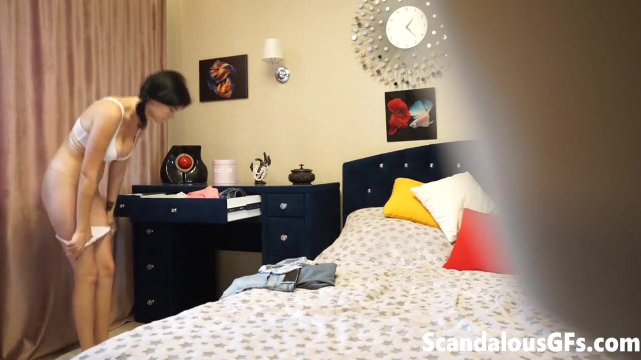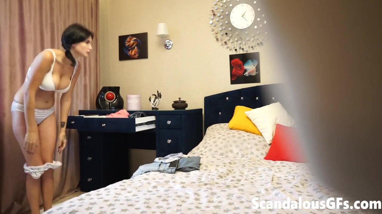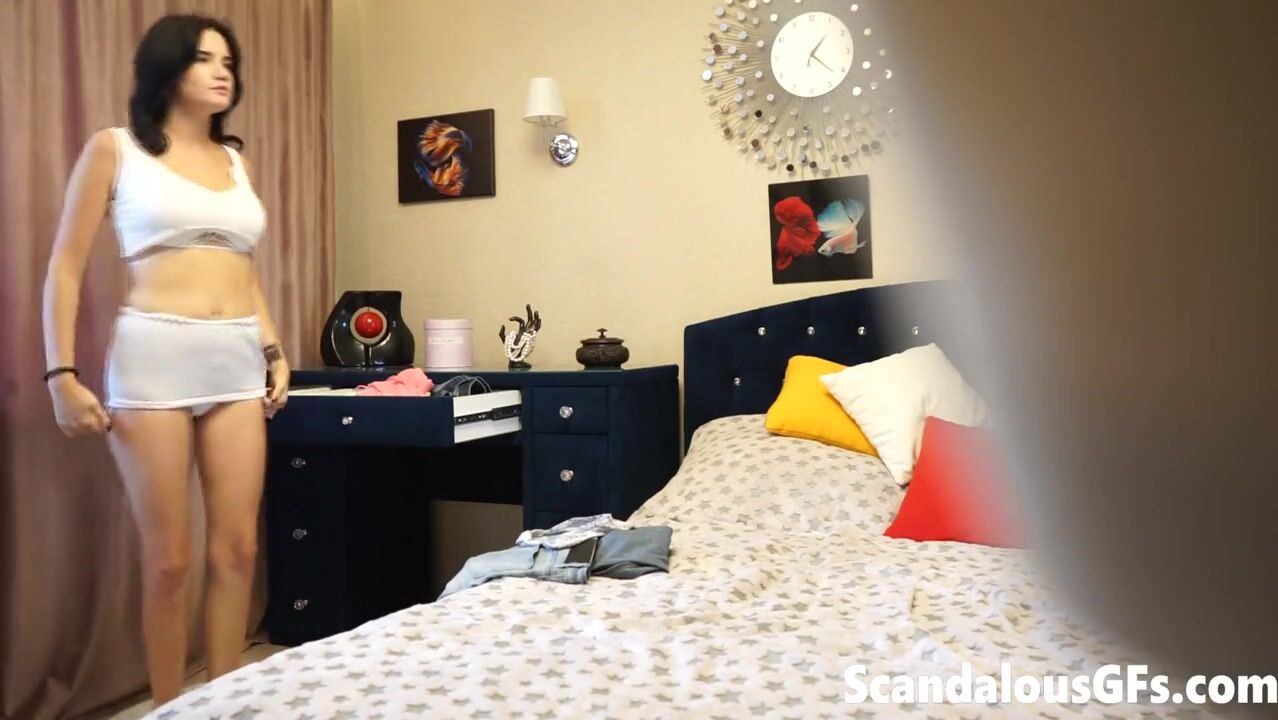 Putita caliente coquetea a la cámara mientras su novio no la ve