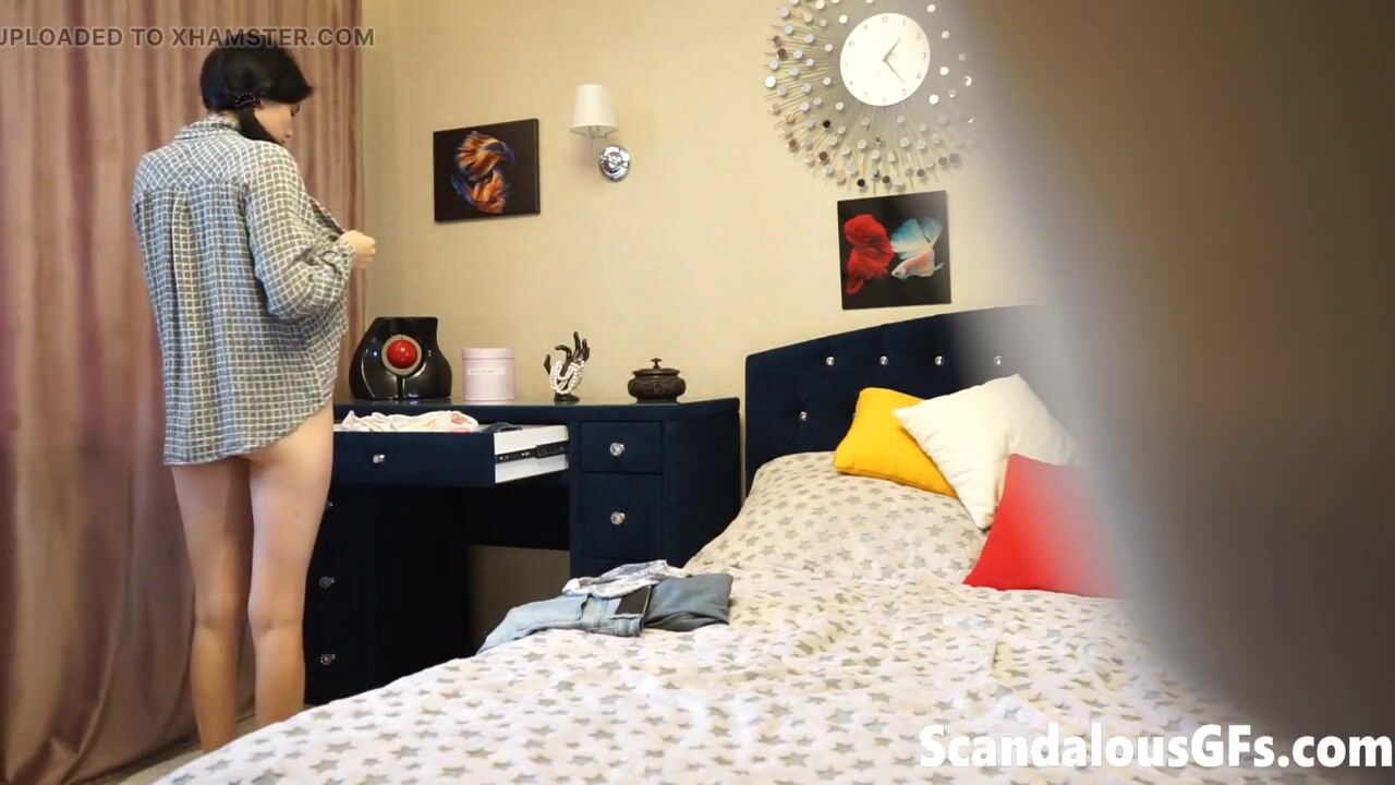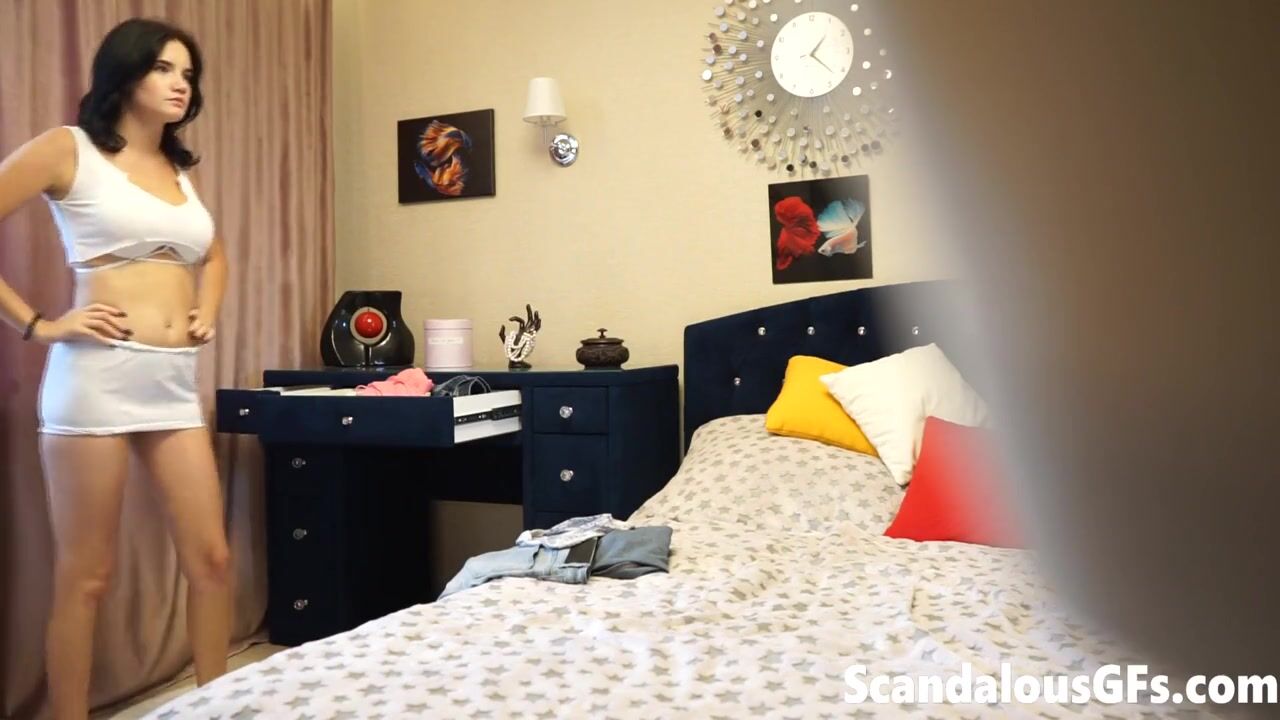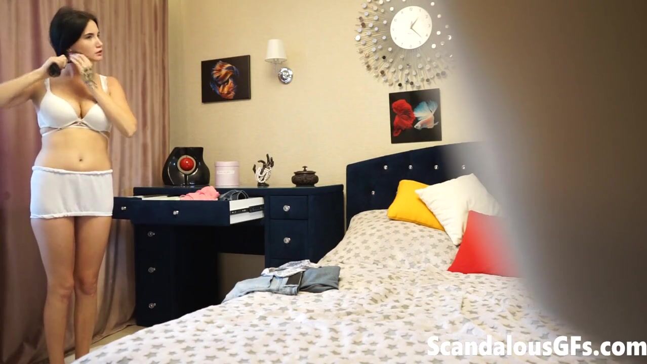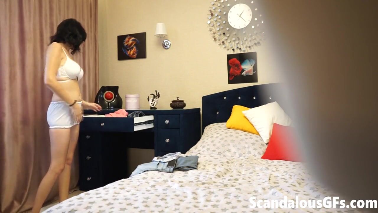 Putita caliente coquetea a la cámara mientras su novio no la ve