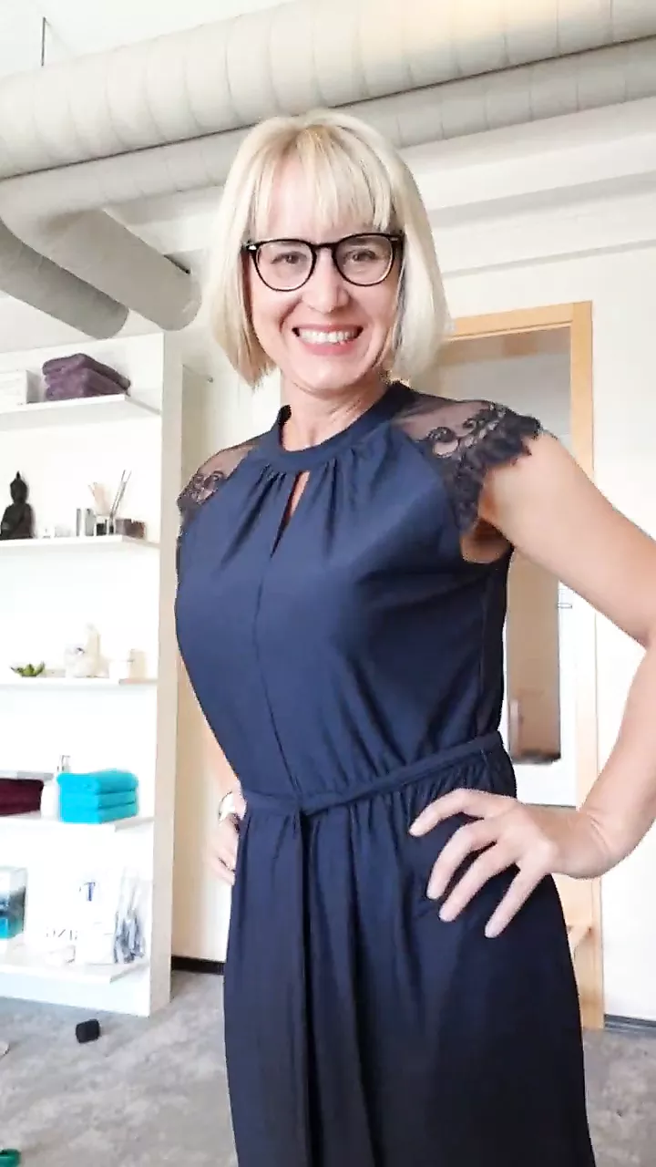 Voluptuous MILF Jane From the UK Looks Delicious in a Black Latex Dress and Tights