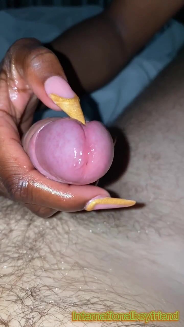 NAIL MASSAGE Ebony Girlfriend gives me handjob with beautiful nails *Close up