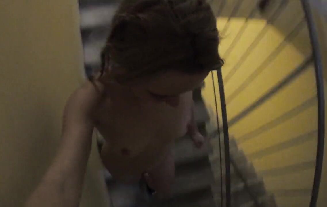Naked girl walks in the entrance