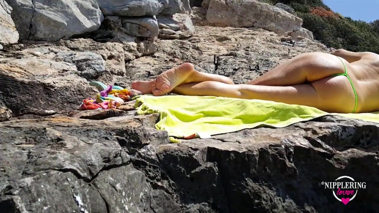 nippleringlover peeing naked at sea flashing large gauge pierced nipples & stretched pussy piercings