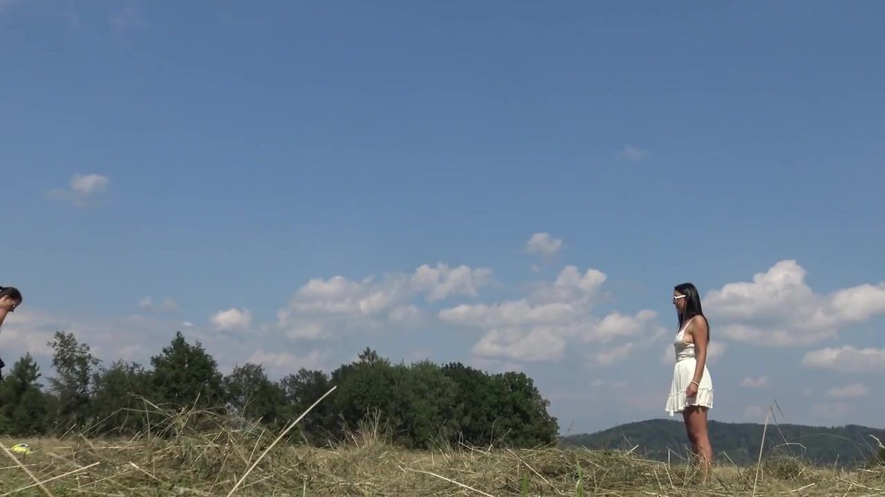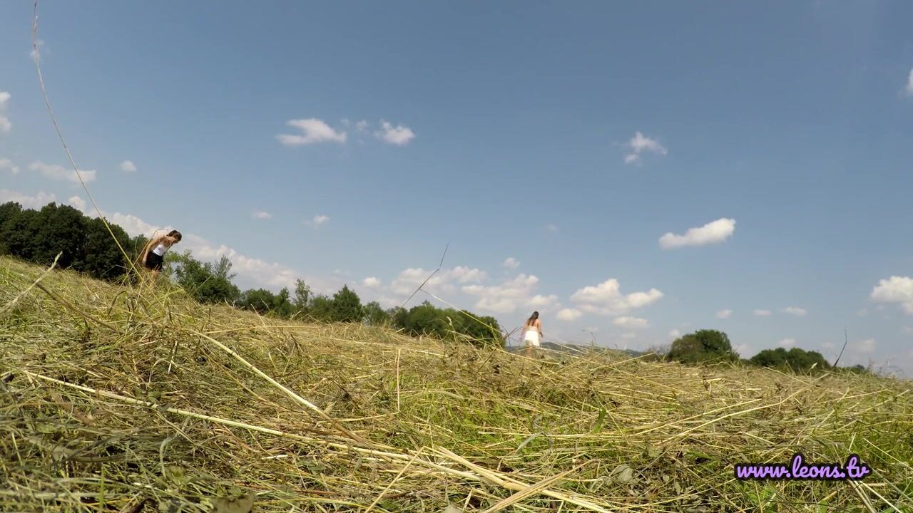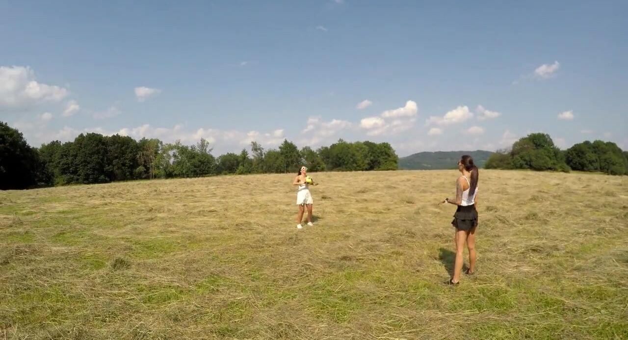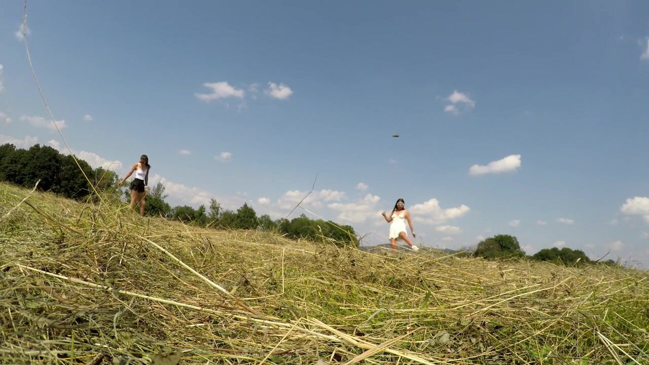 No Panties No Bra Girls Play Outdoors in the Wild to show Boobs and Pussy on a Summer Day