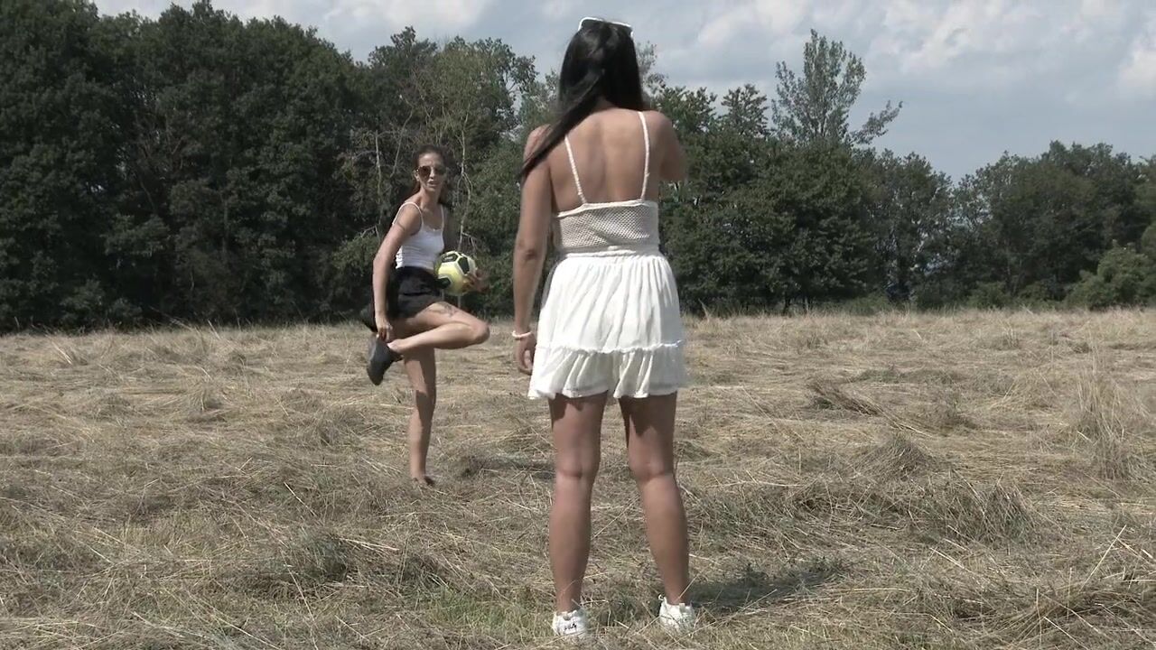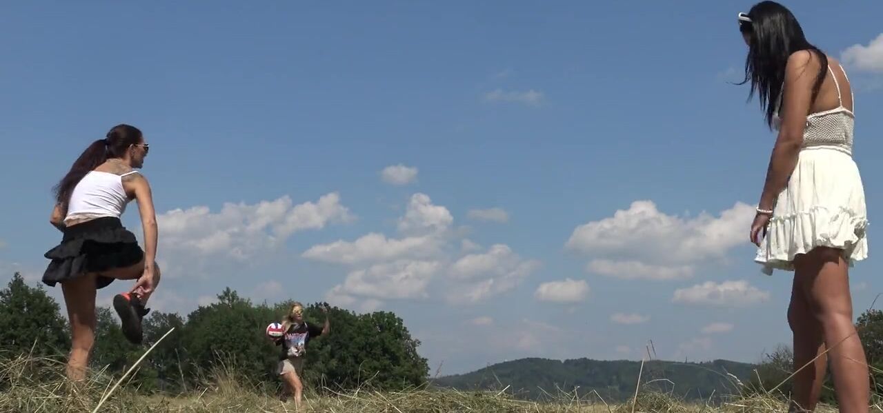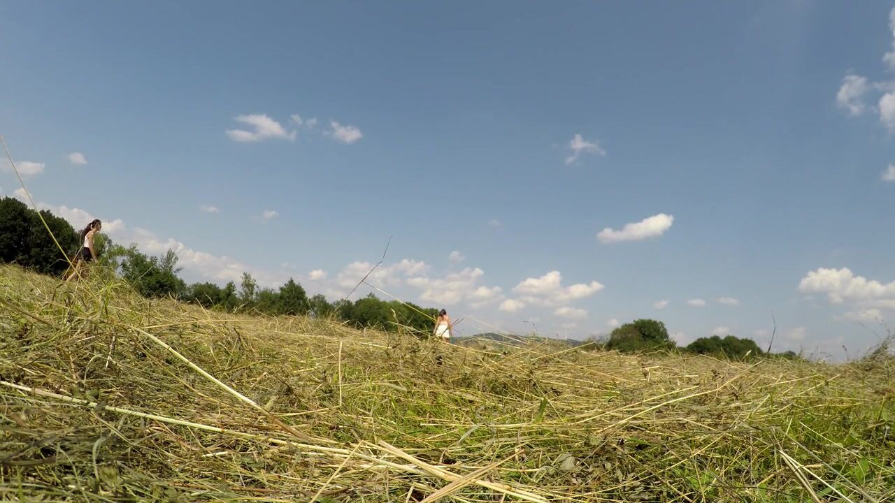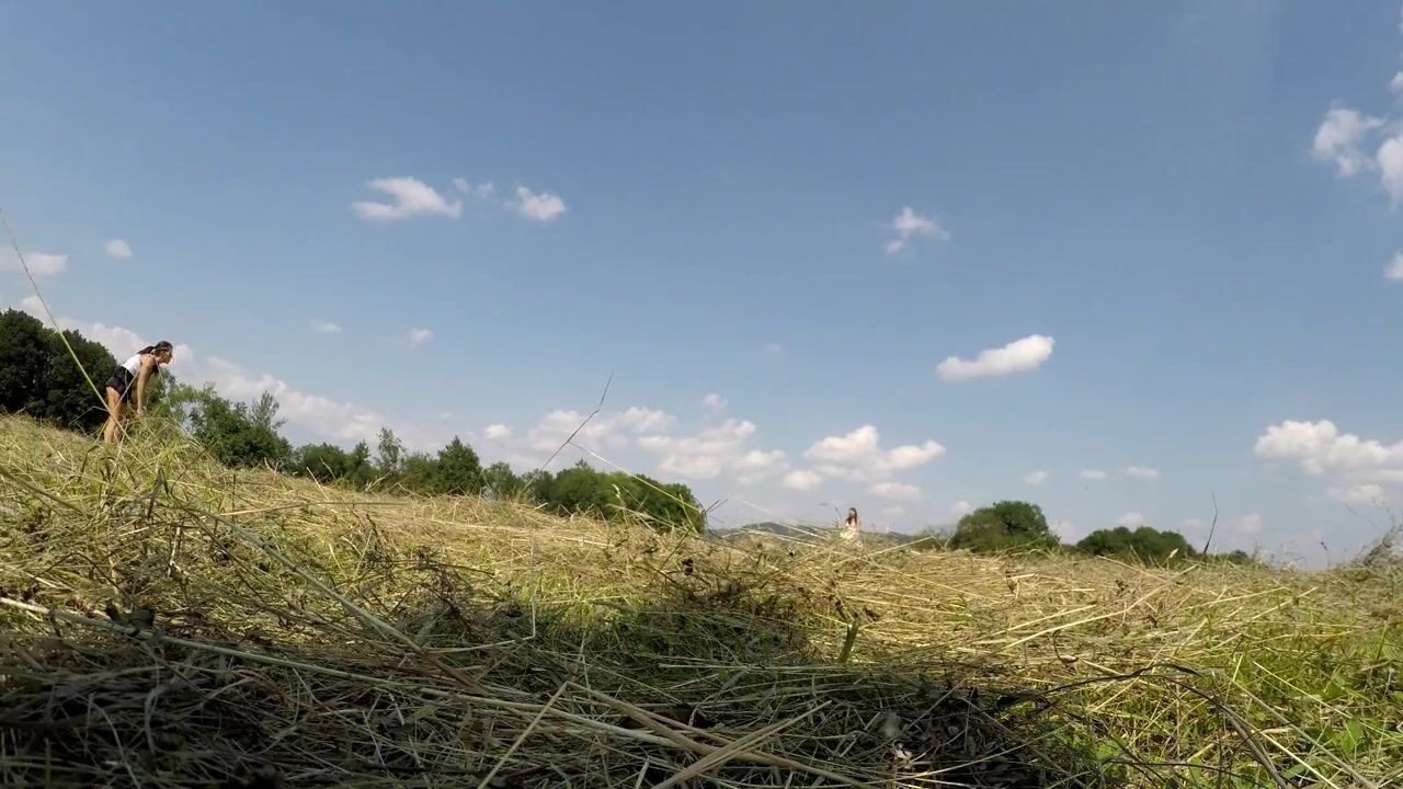 No Panties No Bra Girls Play Outdoors in the Wild to show Boobs and Pussy on a Summer Day