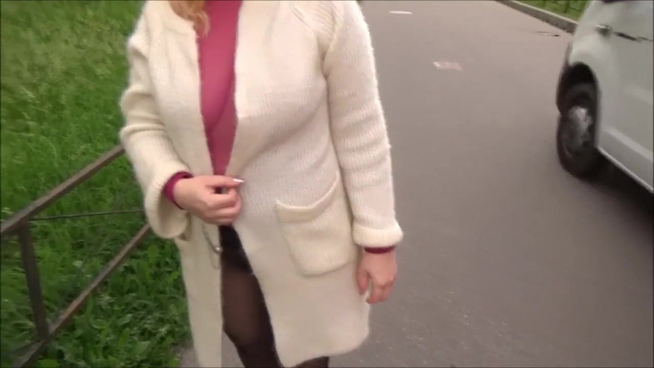 Nylon business lady - flashing in city