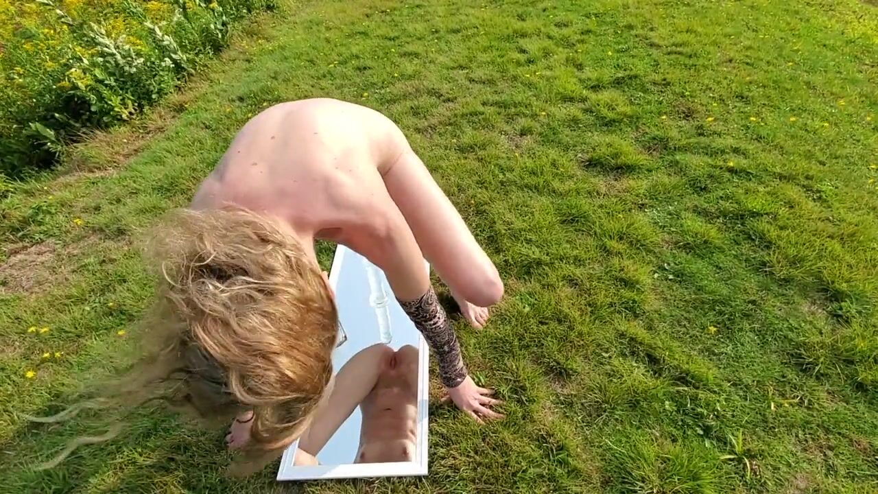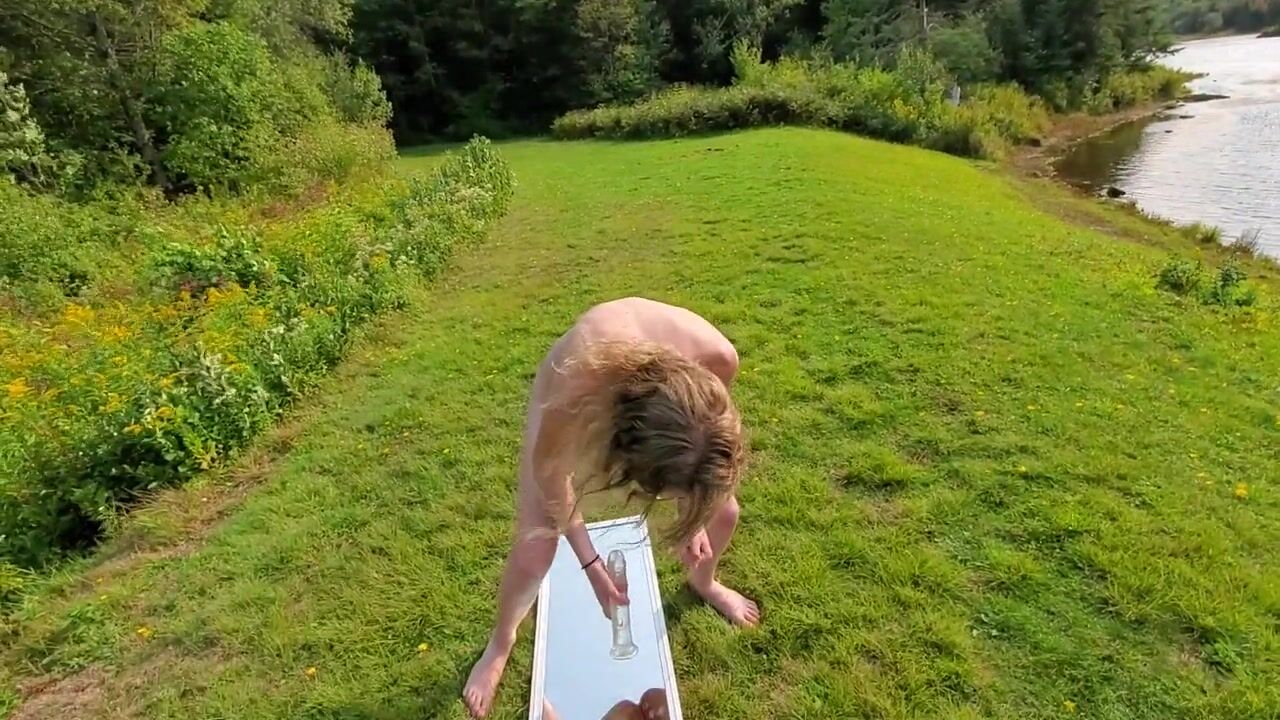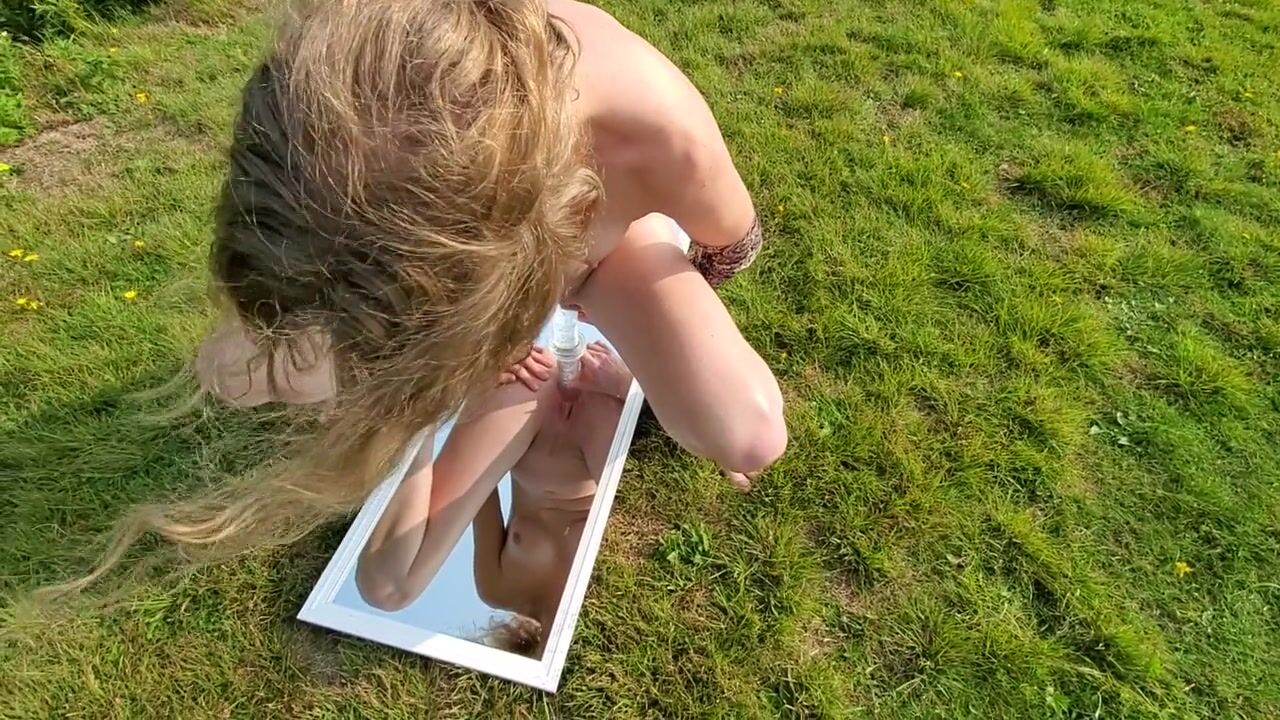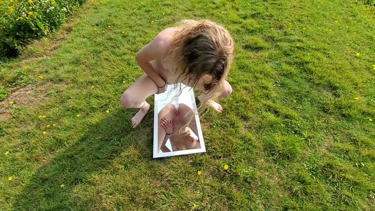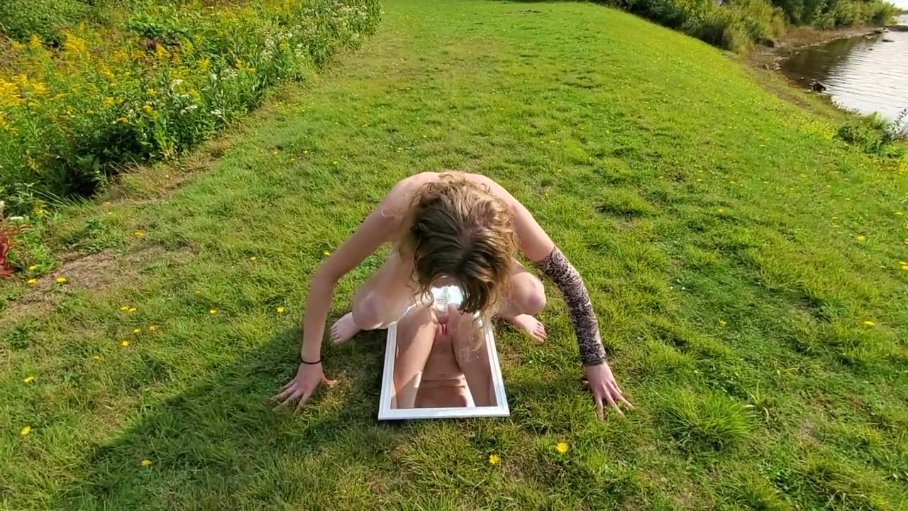 OnlyFans and Twitter Teen Slut Sarah Evans Naked having Fun Fucking a Dildo on a Mirror in Public.