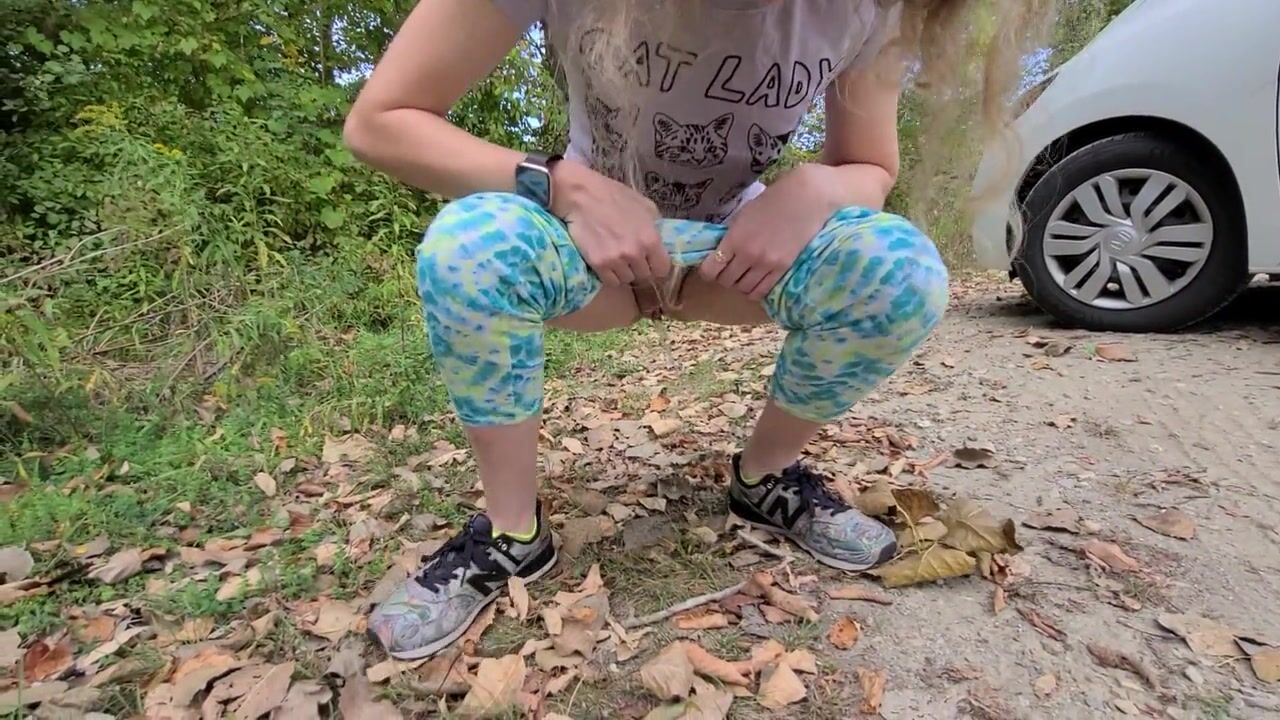 OnlyFans and Twitter Teen Slut Sarah Evans Pee's in Hiking Trail Parking Lot. Follow her Twitter