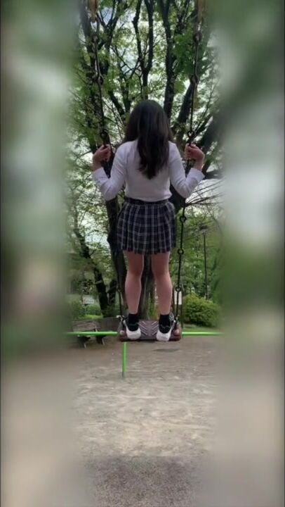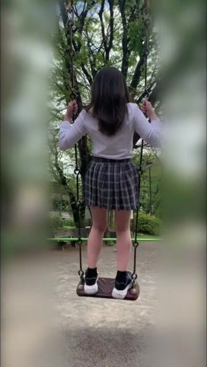 [outdoor Exposure] J ○ tried Riding on a Swing with no Bra and no Panties (rear Angle)
