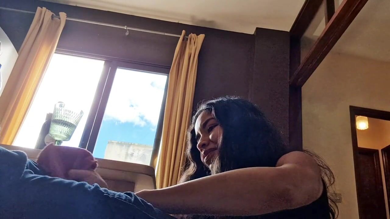 Putita caliente coquetea a la cámara mientras su novio no la ve