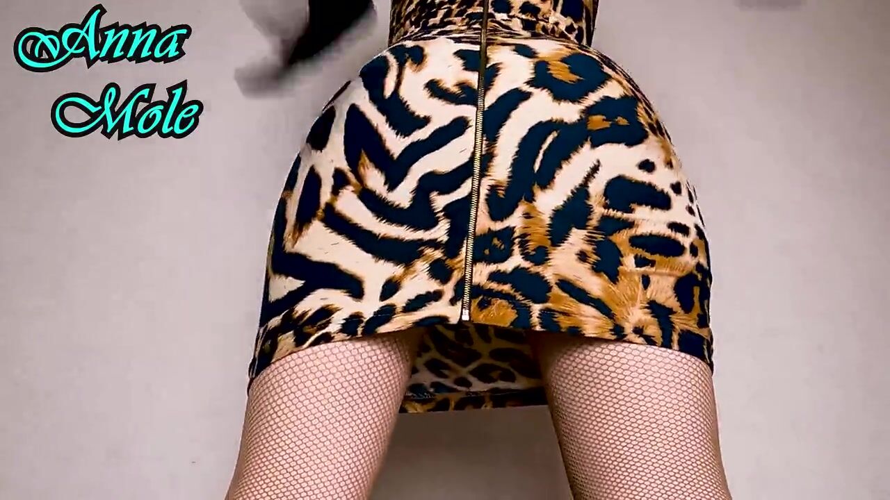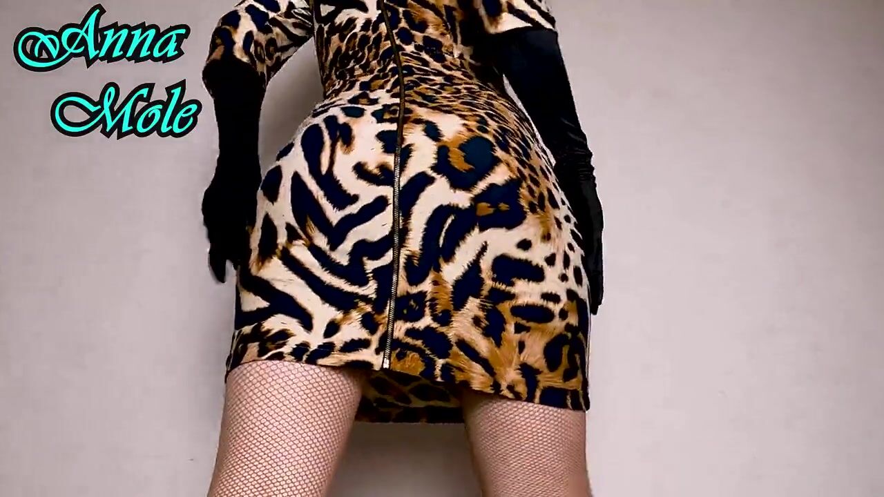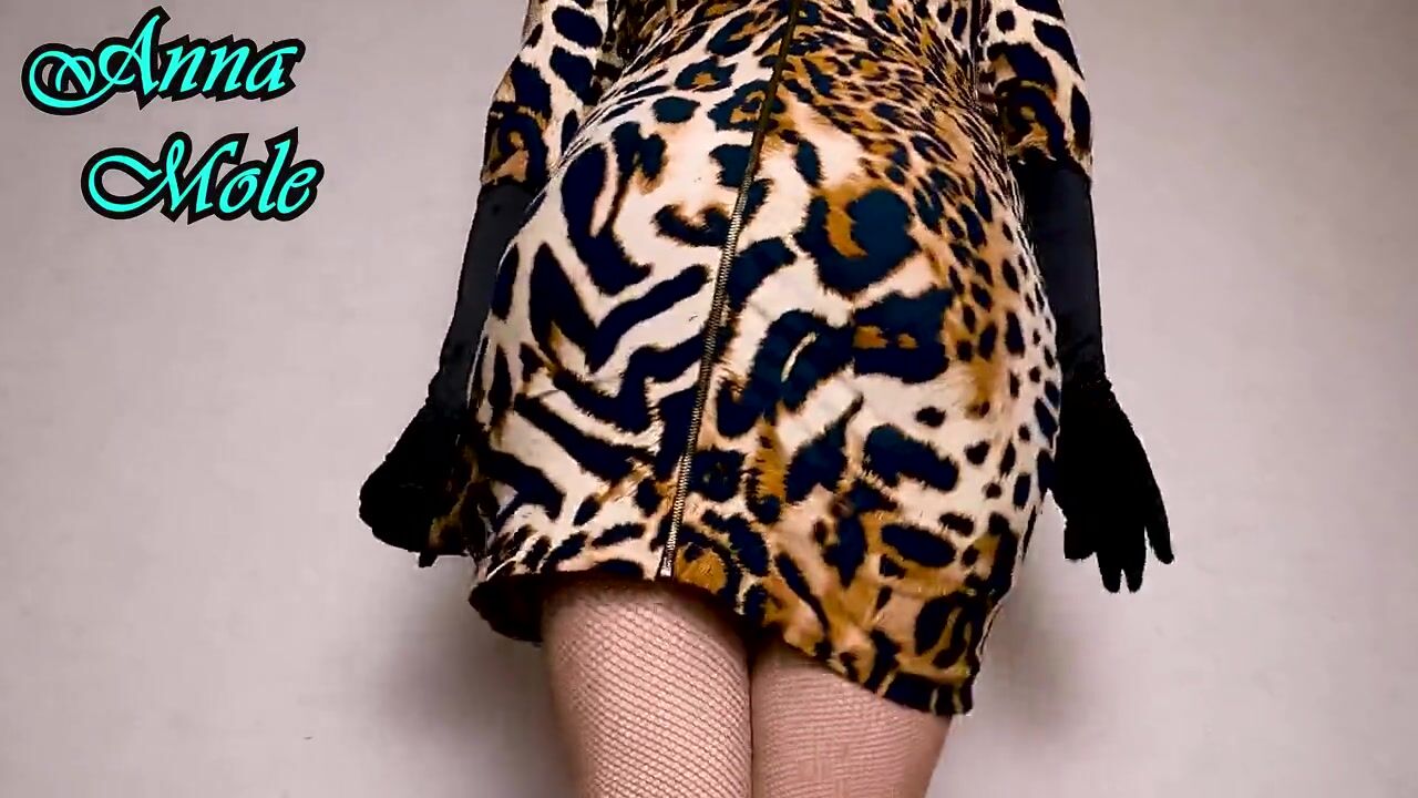 Penetration Into a Juicy Pussy, Close-up. PAWG in a Tight Dress and Gloves Rides a Big Toy Sensually Leopard Print