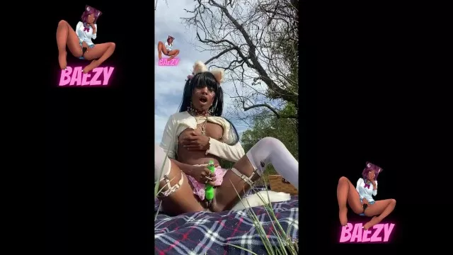 Petite Ebony Cosplayer almost gets CAUGHT masturbating At THE PARK