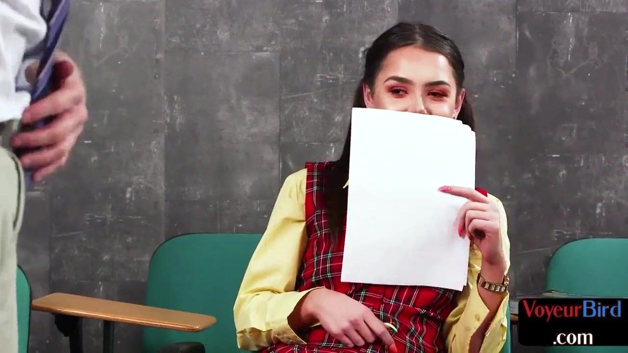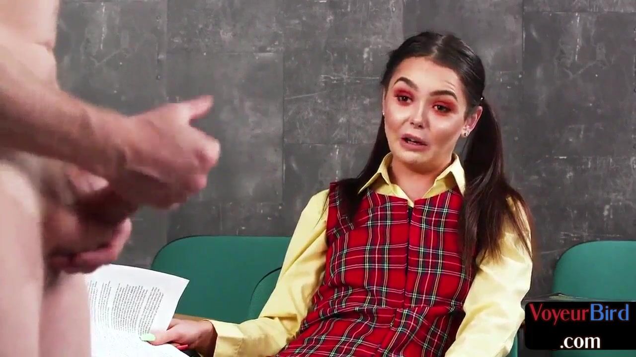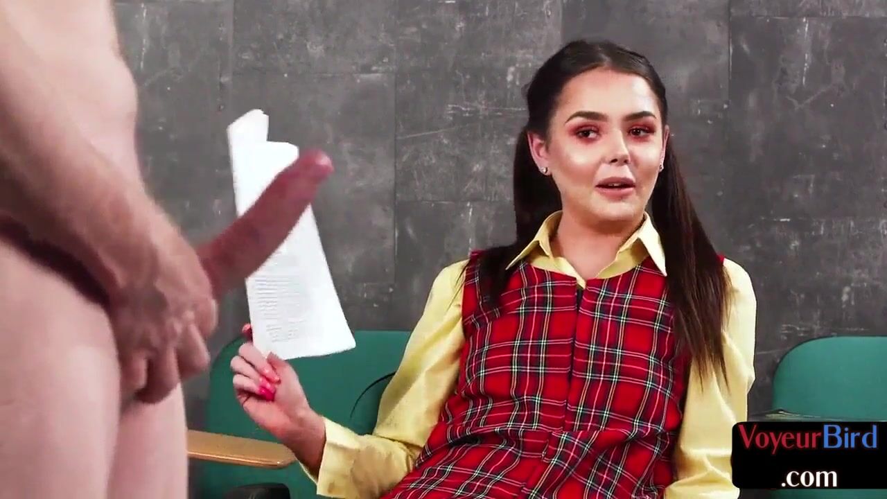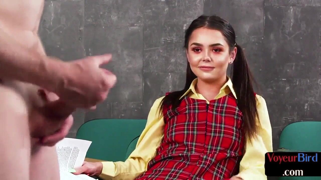 Pigtailed CFNM voyeur commands sub to jerk off