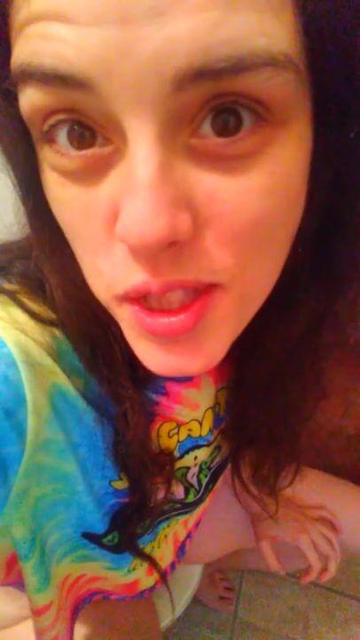 PinkMoonLust Pees on her Tampon String Peeing Urine Piss Fetish Hairy Girl Sits on Dirty Toilet