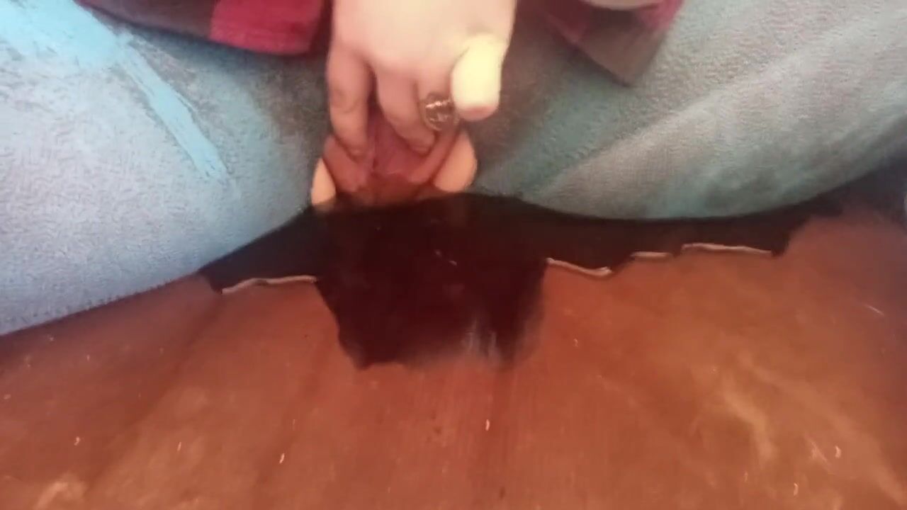 Pissing Couch through Crotchless Pants Big Puddle
