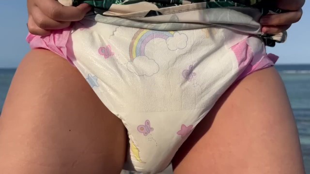 Pissing in diaper outdoors