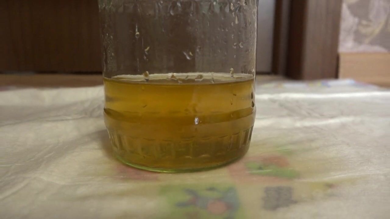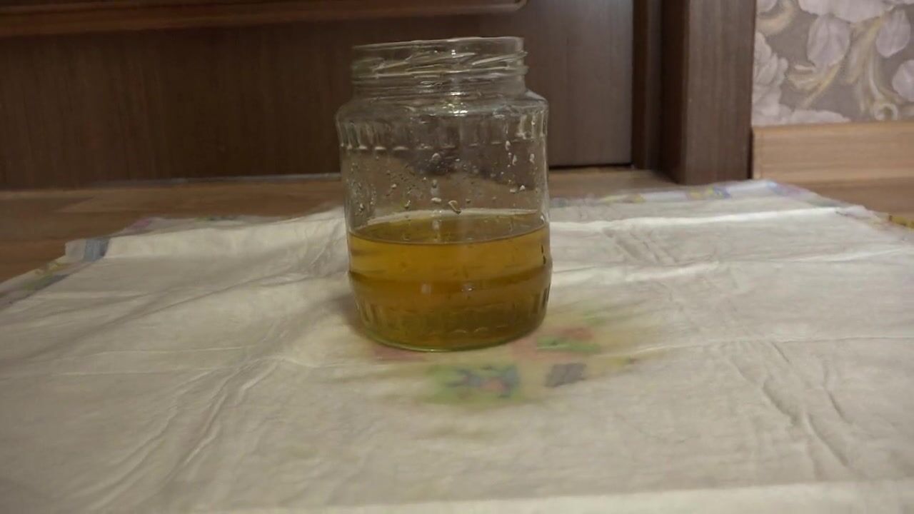 Pissing. Mature, hairy big pussy pissing in a jar. Would you like that drink with yellow urine? ASMR. Dirty fetish.