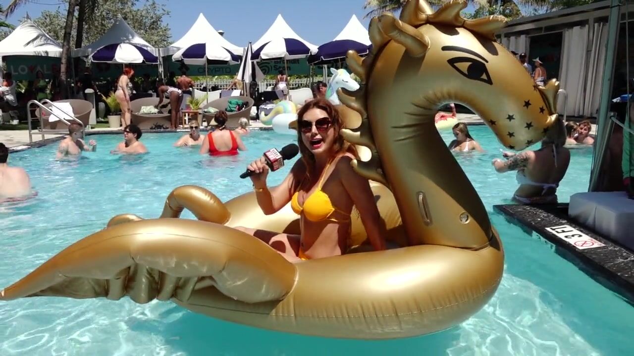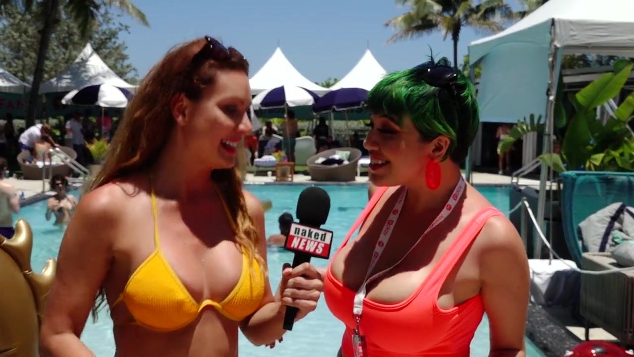 Porn Star interviews & public flashing at XBiz in South Beach Miami by Naked News reporter