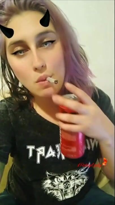 POV Look into my eyes smoking and staring at the camera with different color of hair. Cute alt girl