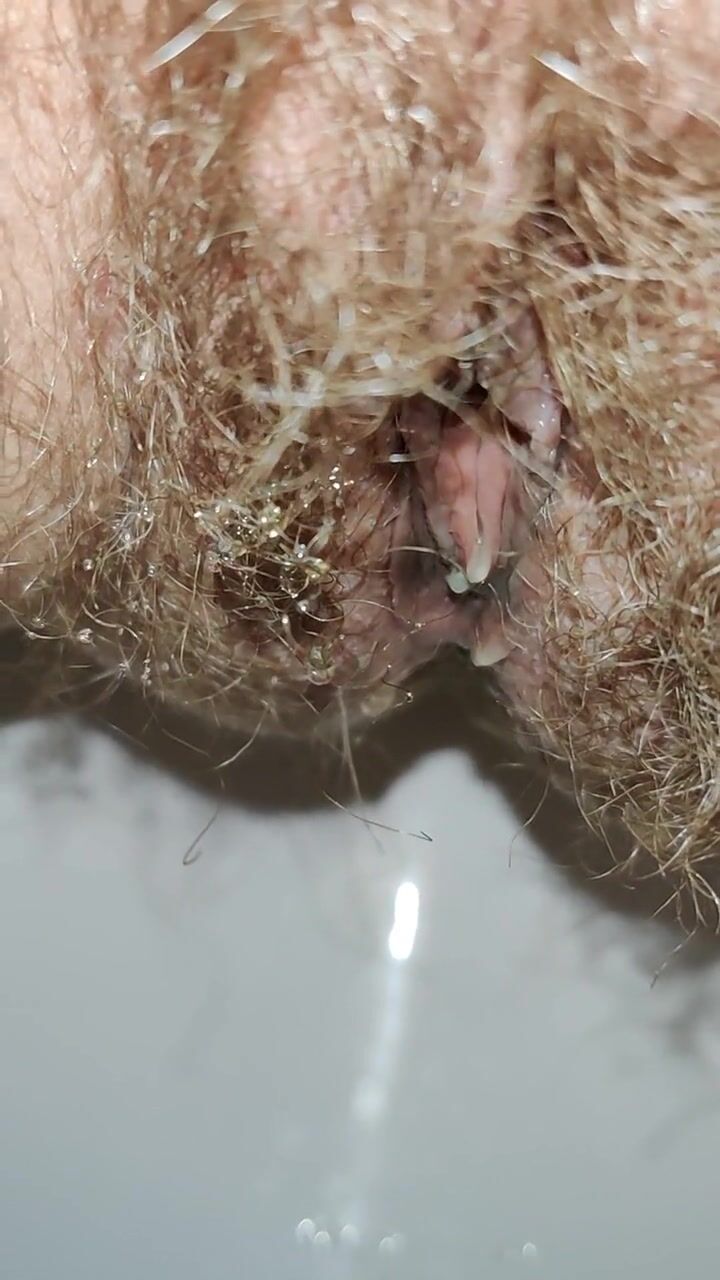Power piss in toilet ???? Mega hairy pussy peeing Close up