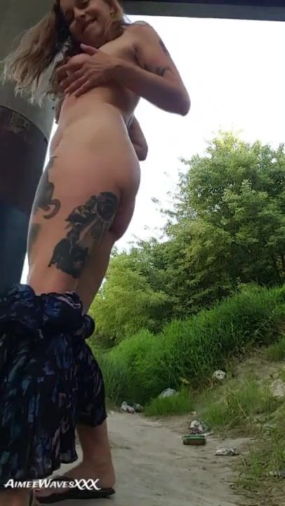 Pretty Sundress Babe Flashes You Under a Bridge