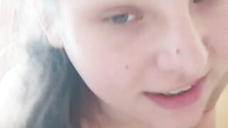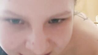 Dutch girl with needle pierced tits sucks cock and gets his cum in her eye