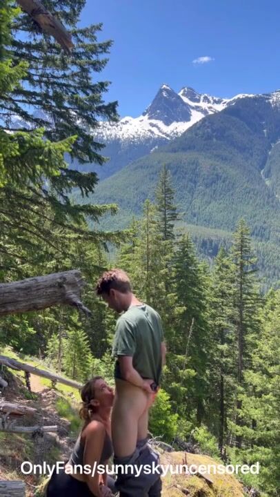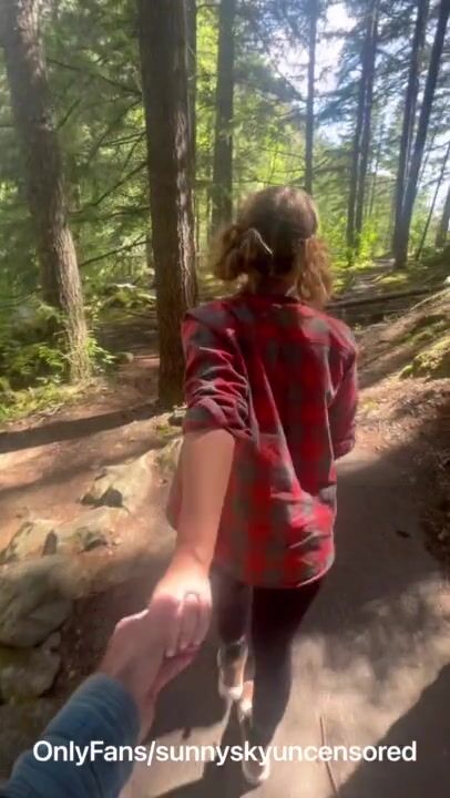 Risky outdoor quicky right on the trail - creampie ending