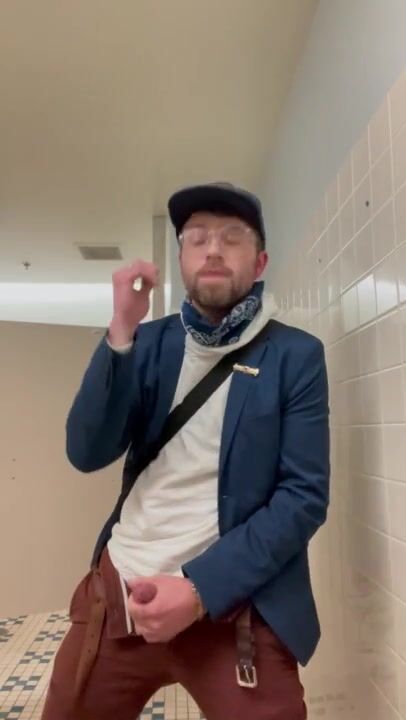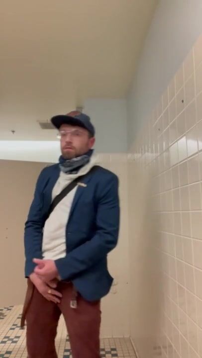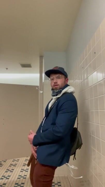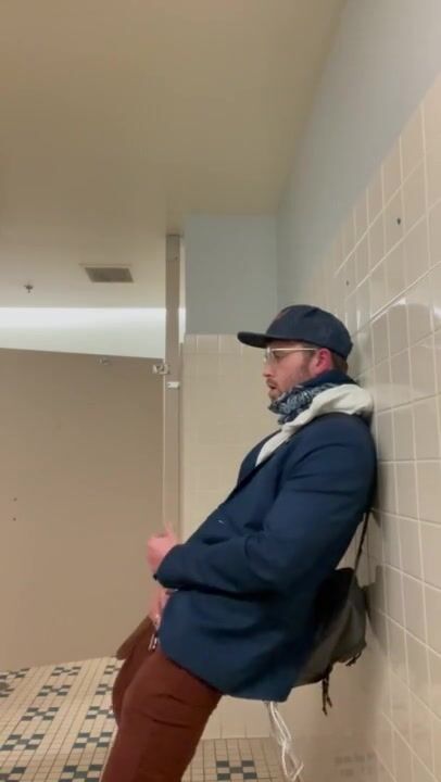 Risky Public Wank in Store Mens Room w/ HUGE Cum Spray