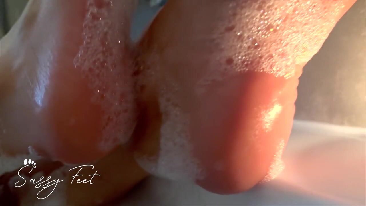 Romantic Bubble Bath Foot Pampering: Red & Black Nails, Soles, Toes, and Sensual Foam Play – A Luxurious Feet Fetish Escape