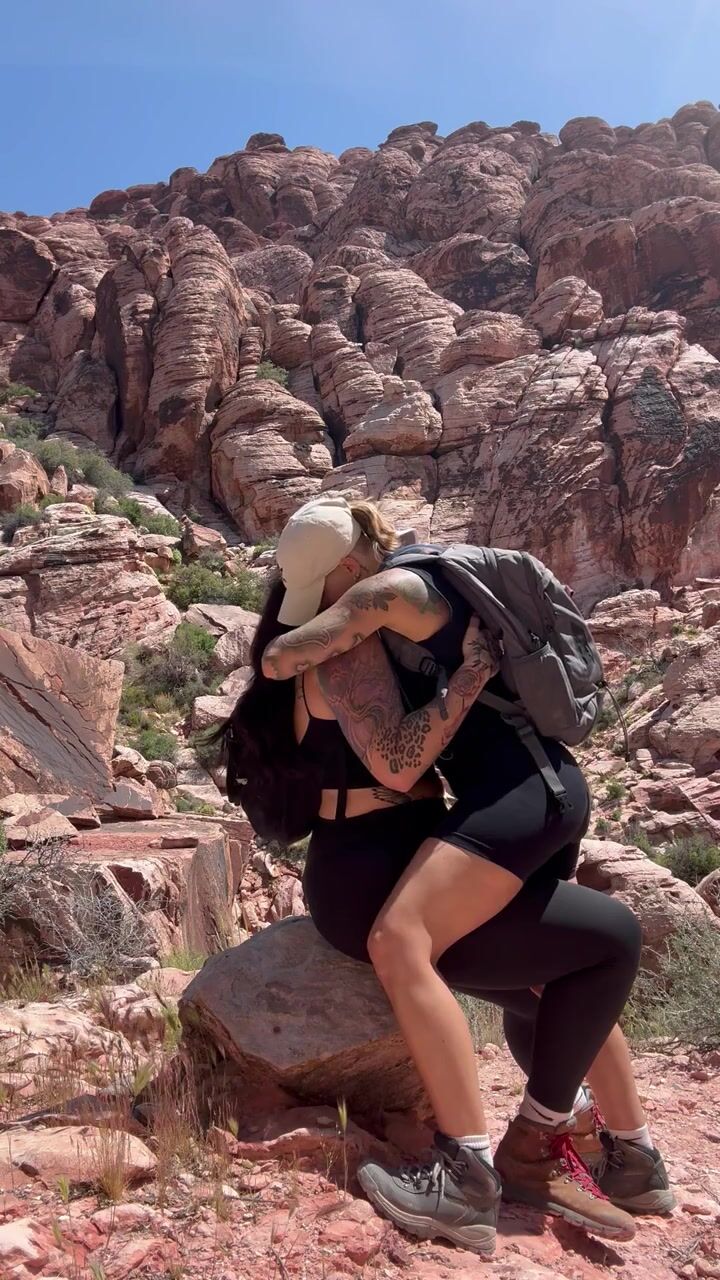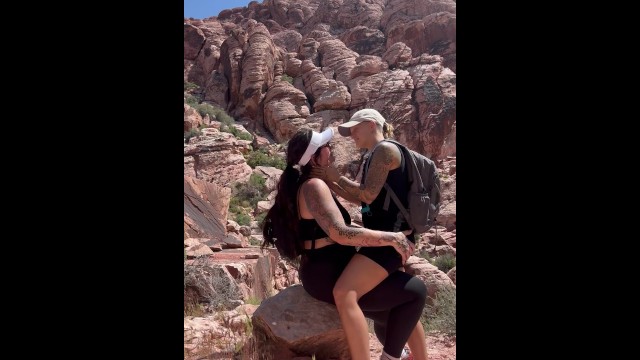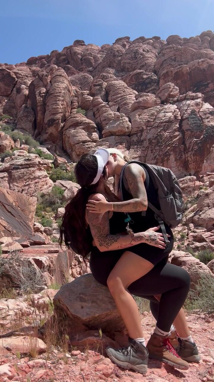 Rough lesbian makeout outside in public park