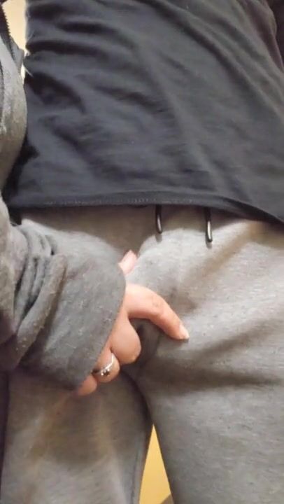 Rubbing on my man dick till he gets hard