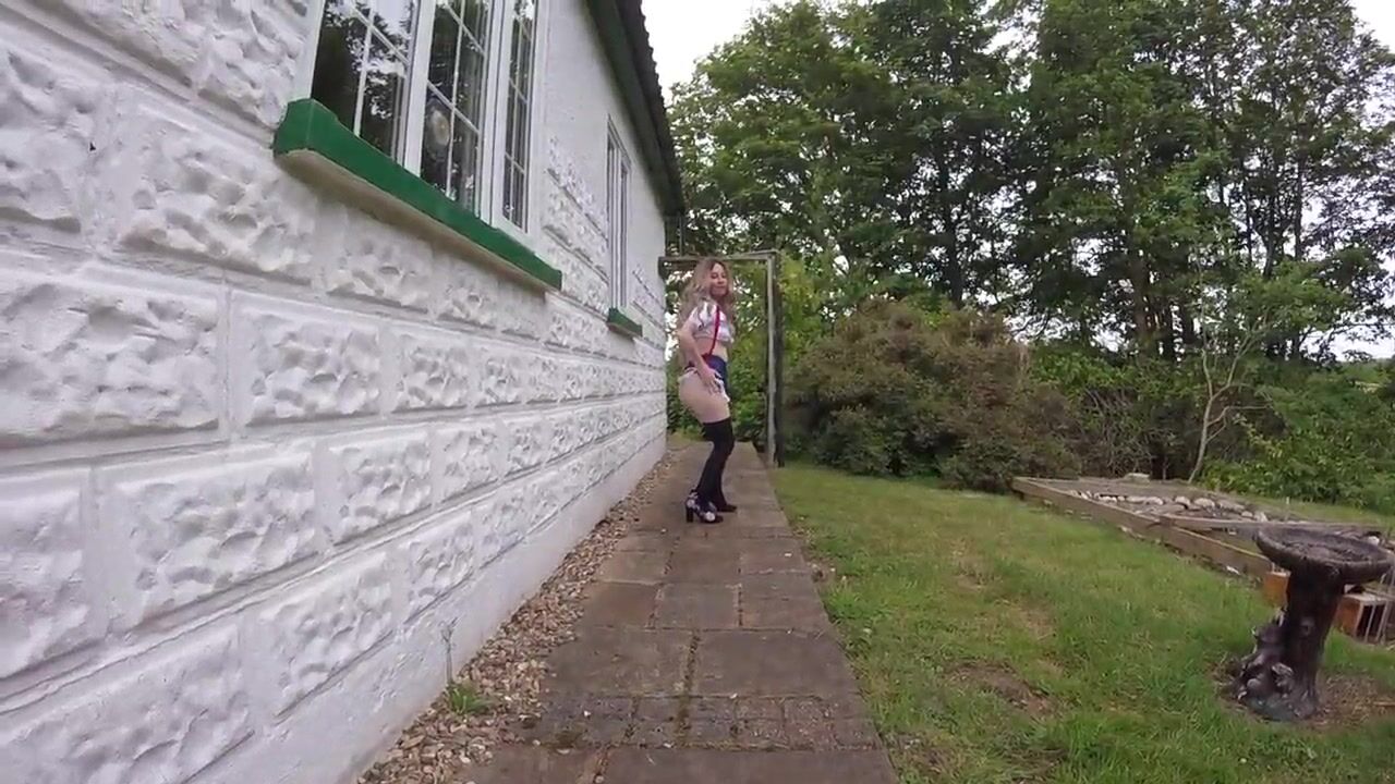 Sailor moon cosplay in thigh high Boots outdoors