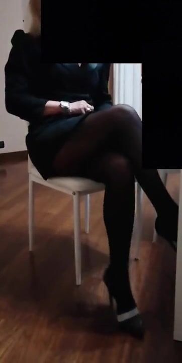 Voluptuous MILF Jane From the UK Looks Delicious in a Black Latex Dress and Tights