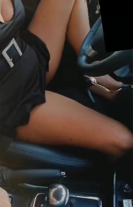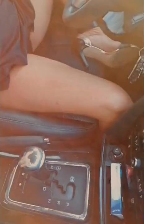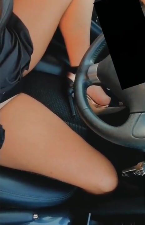 Sarah drives showing panties with open legs
