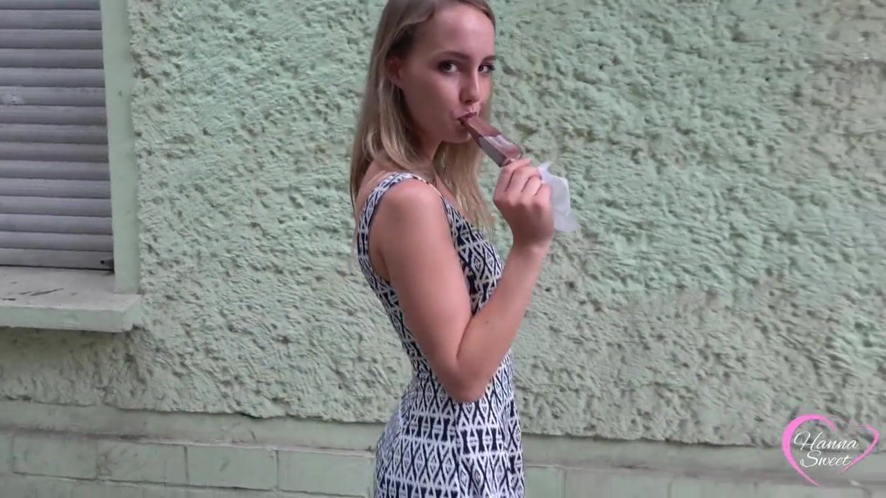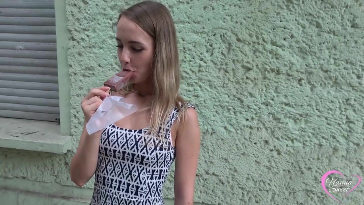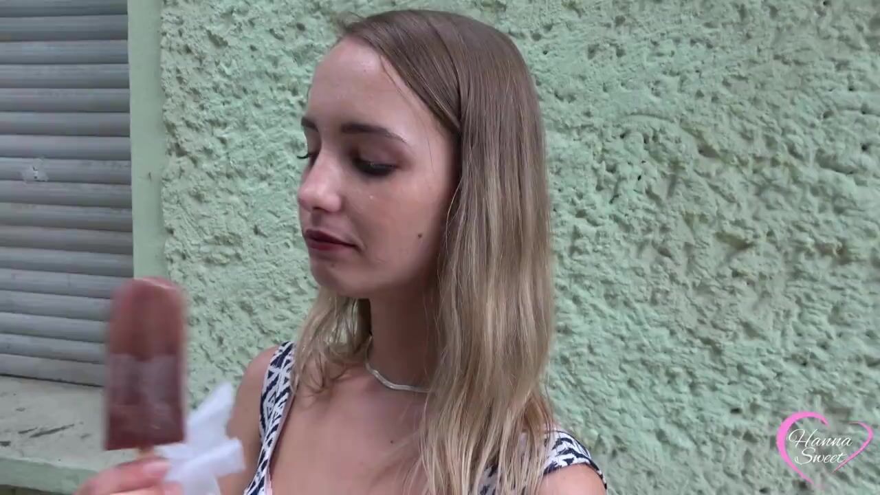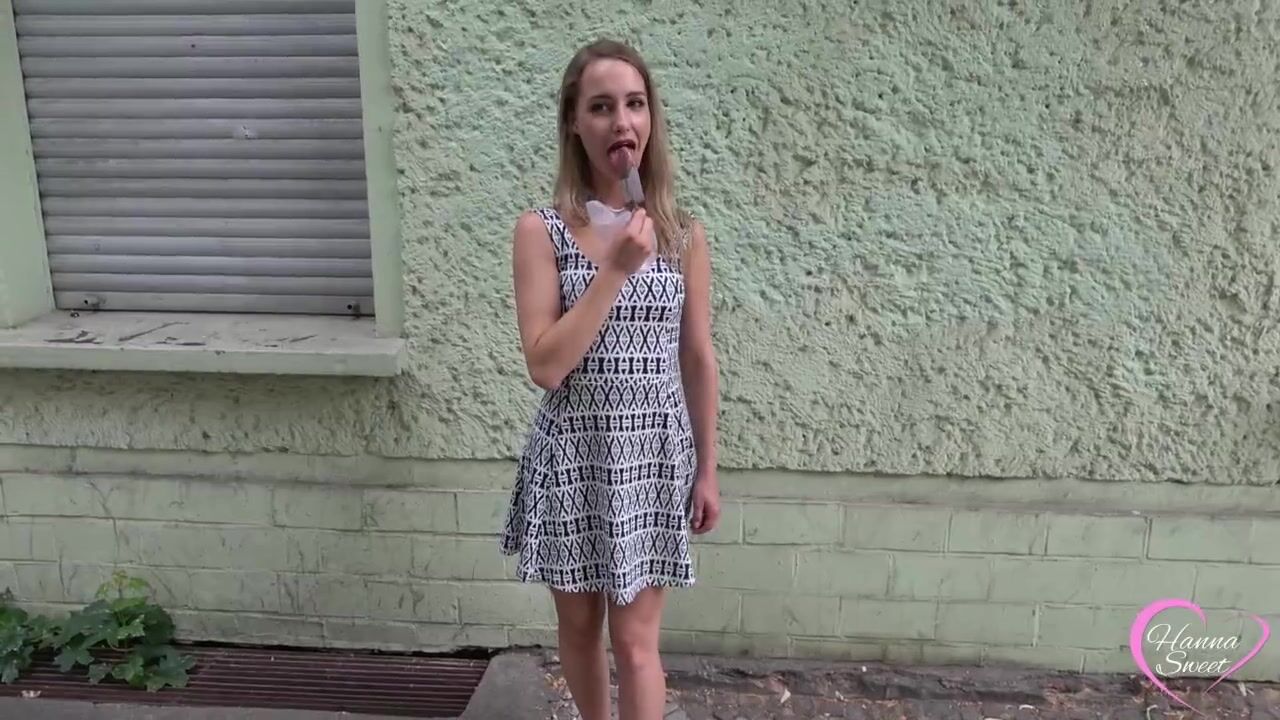 Schau Mir Beim Lutschen Zu- 18 Jähriges Teeny Girl Mit Kleinem Mund Lutscht Provokant Auf Der Straße