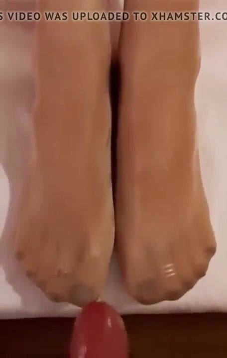 School friend cums on my mom's feet in pantyhose