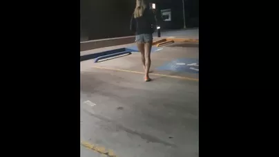 Sexy Brunette with Mini Shorts Public Pissing Converse