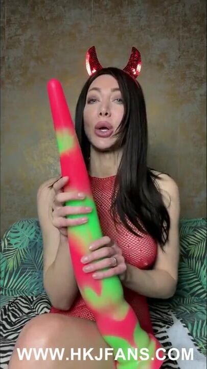 Sexy Devil Hotkinkyjo fuck ass with long dildo & prolapse