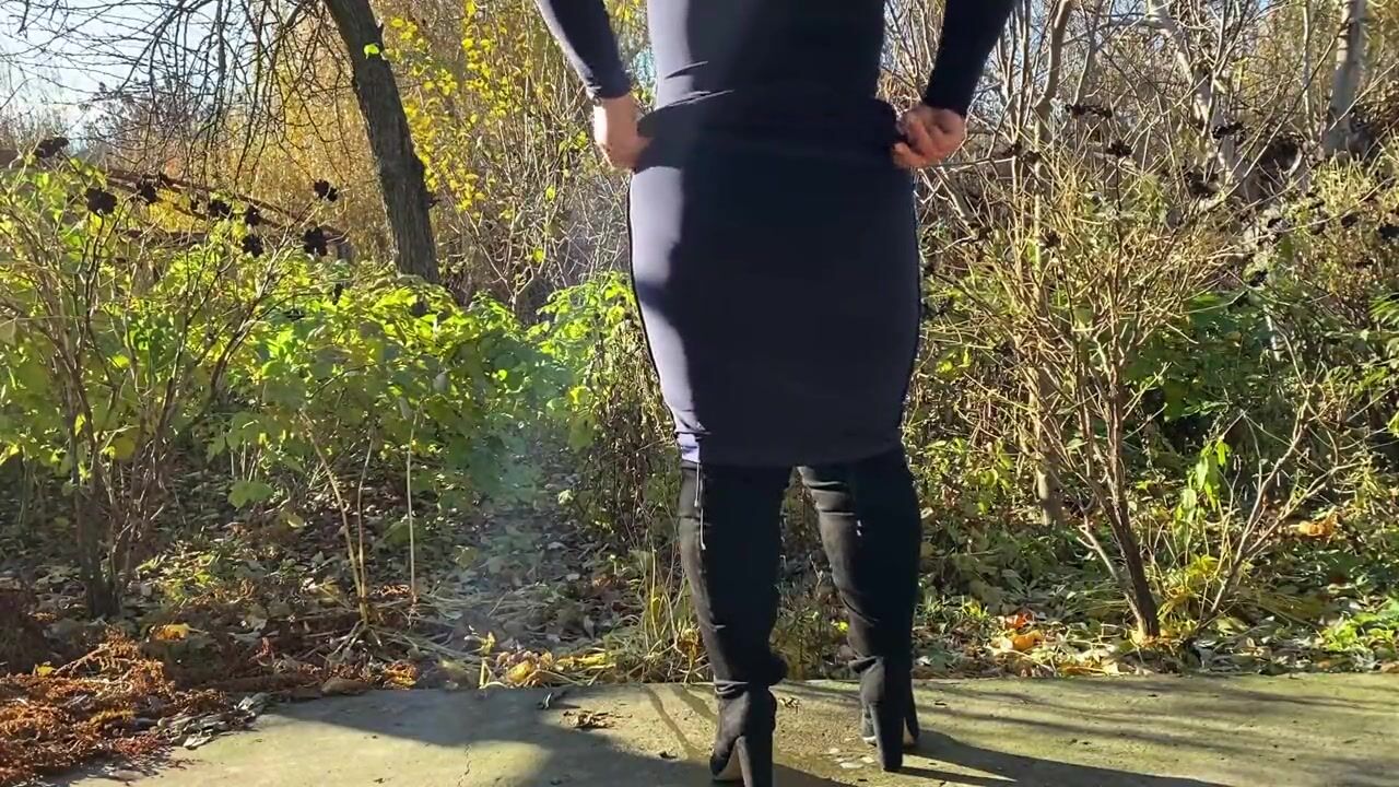 Sexy MILF pissing in a public place without fear of being seen